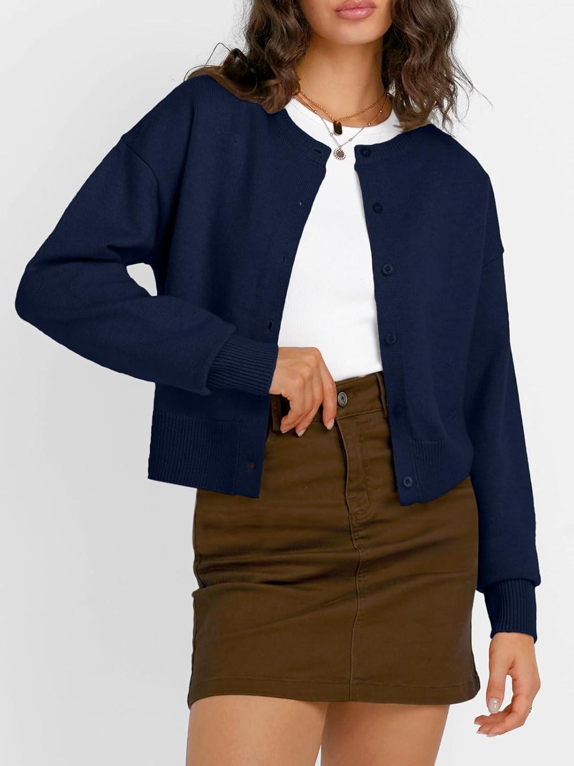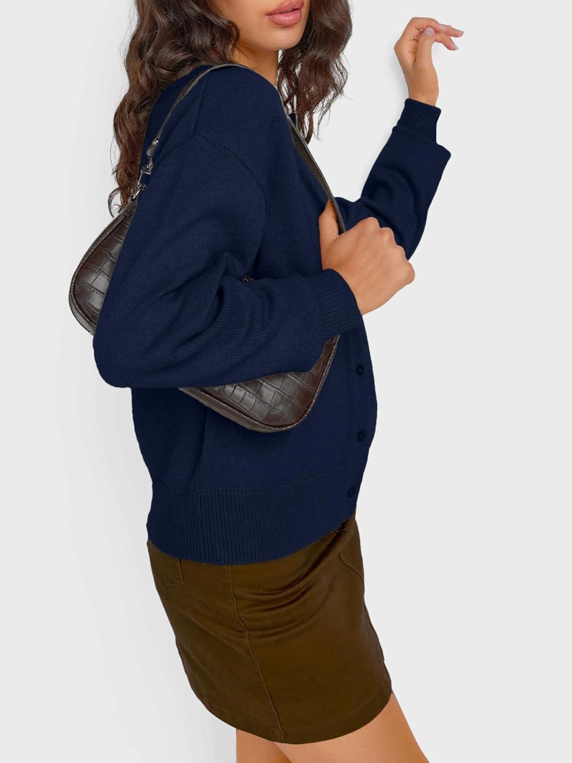 Trendy Queen Cropped Cardigan Sweaters for Women Lightweight Crop Knit Y2k Fall Outfits Fashion Clothes 2025(Navy)