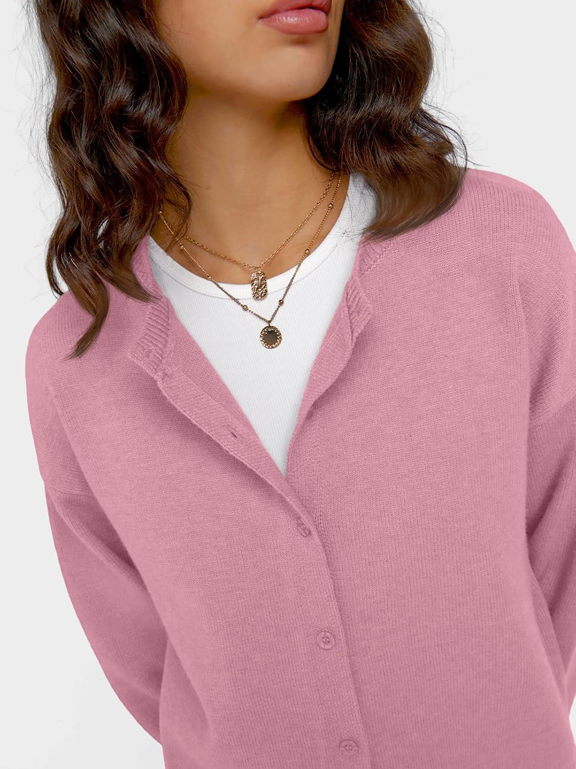 Trendy Queen Cropped Cardigan Sweaters for Women Lightweight Crop Knit Y2k Fall Outfits Fashion Clothes 2025(Pink)