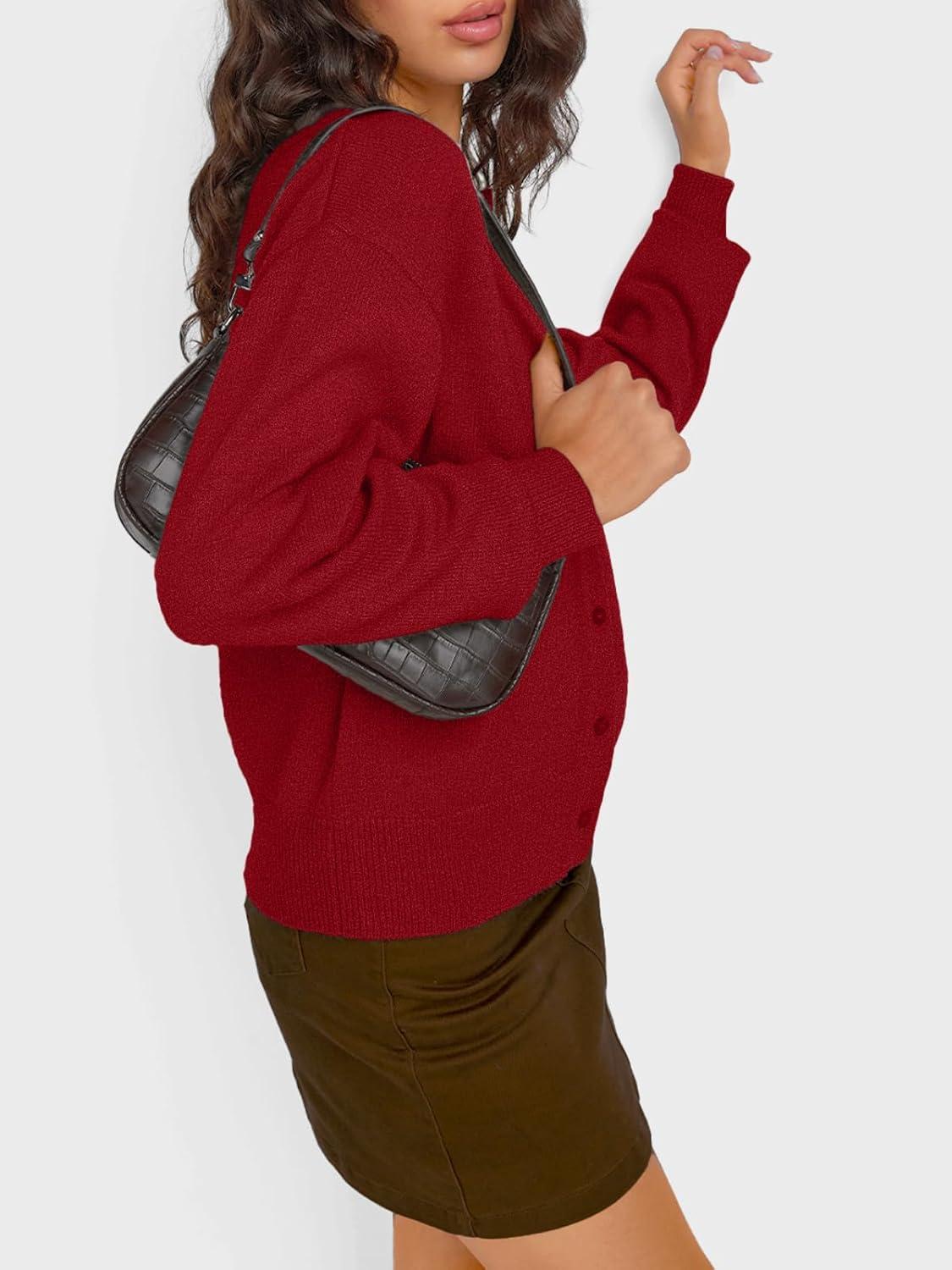 imageTrendy Queen Cropped Cardigan Sweaters for Women Lightweight Crop Knit Y2k Fall Outfits Fashion Clothes 2025Red