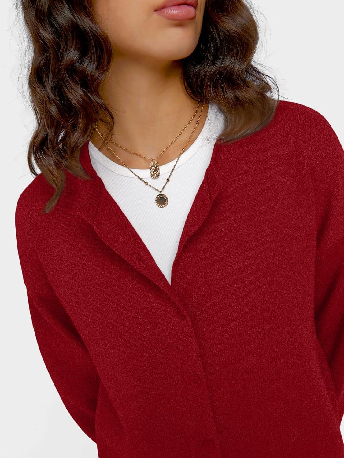 Trendy Queen Cropped Cardigan Sweaters for Women Lightweight Crop Knit Y2k Fall Outfits Fashion Clothes 2025(Red)