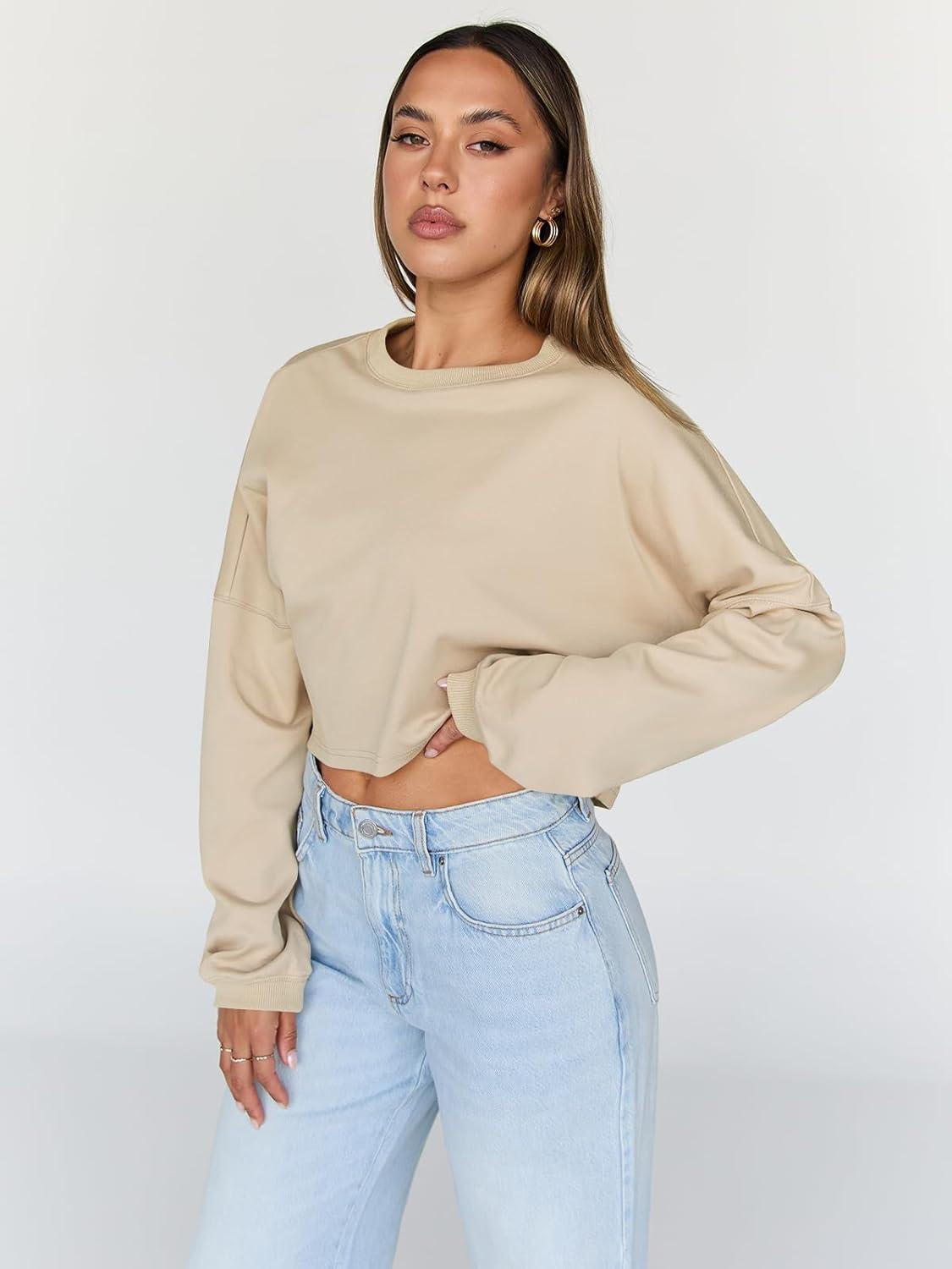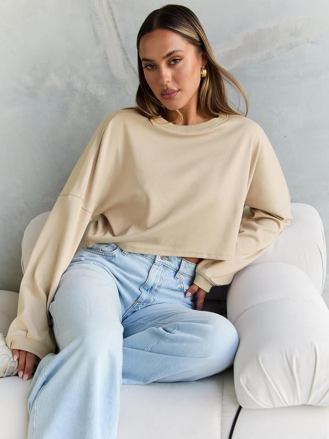 Save big on Trendy Queen Cropped Sweatshirts for Women Oversized Crewneck Sweaters Long Sleeve Tops Fall Winter Clothes 2025(Apricot) and accessories during our BOGO sale. Buy one, get one 50% off!