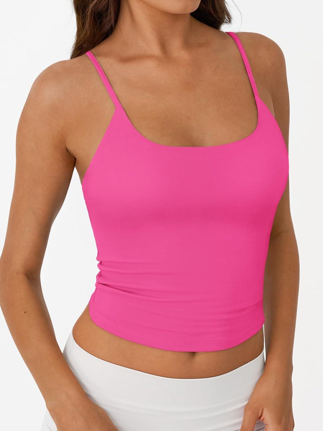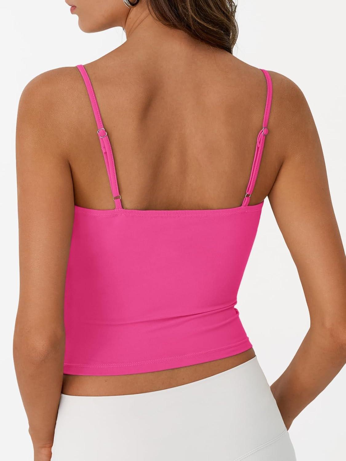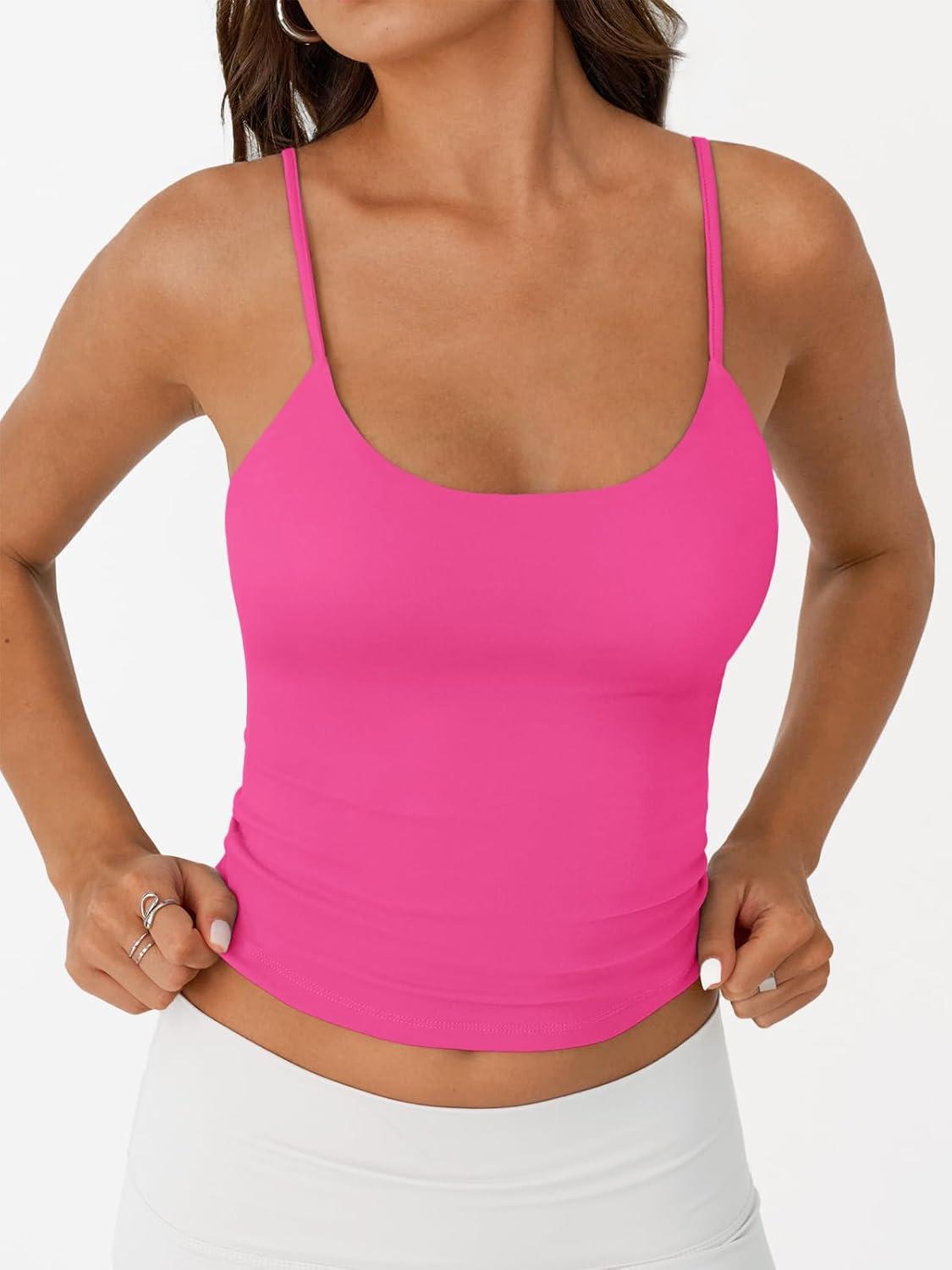 Trendy Queen Double Lined Tops for Women Adjustable Camisole Summer Teens Cute Going Out Spaghetti Strap Crop Tank Tops(Hotpink)
