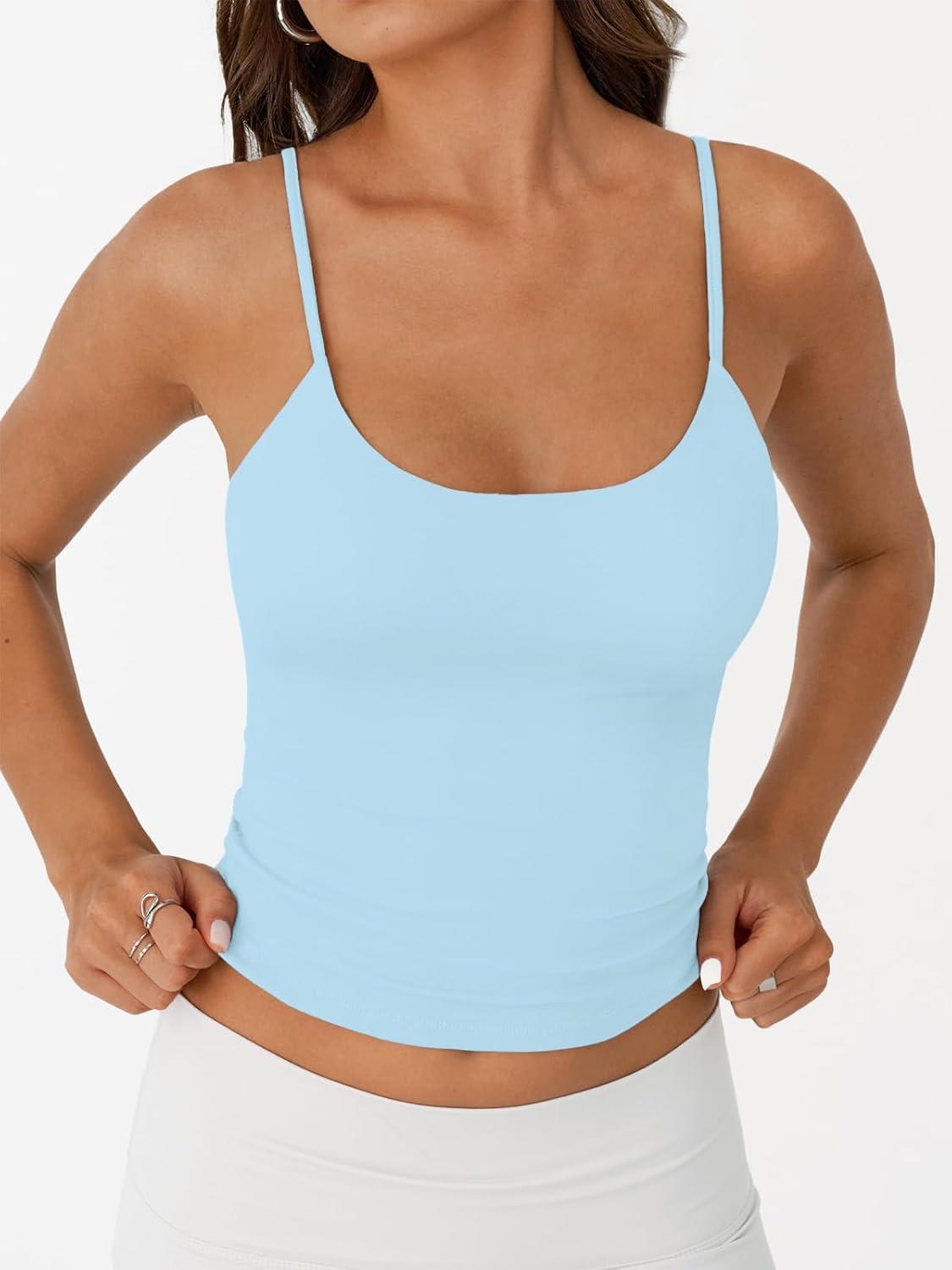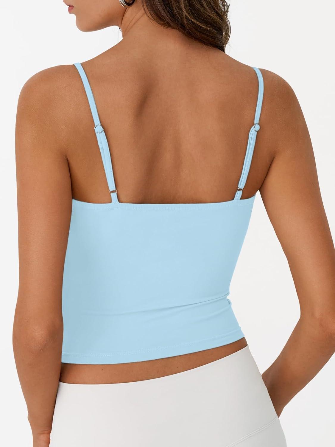 imageTrendy Queen Double Lined Tops for Women Adjustable Camisole Summer Teens Cute Going Out Spaghetti Strap Crop Tank TopsLightblue