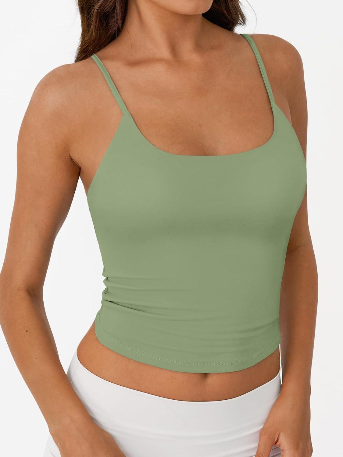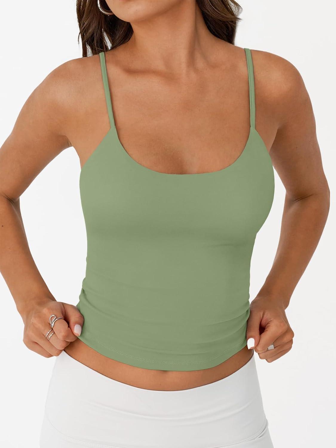 Trendy Queen Double Lined Tops for Women Adjustable Camisole Summer Teens Cute Going Out Spaghetti Strap Crop Tank Tops(Lightgreen)