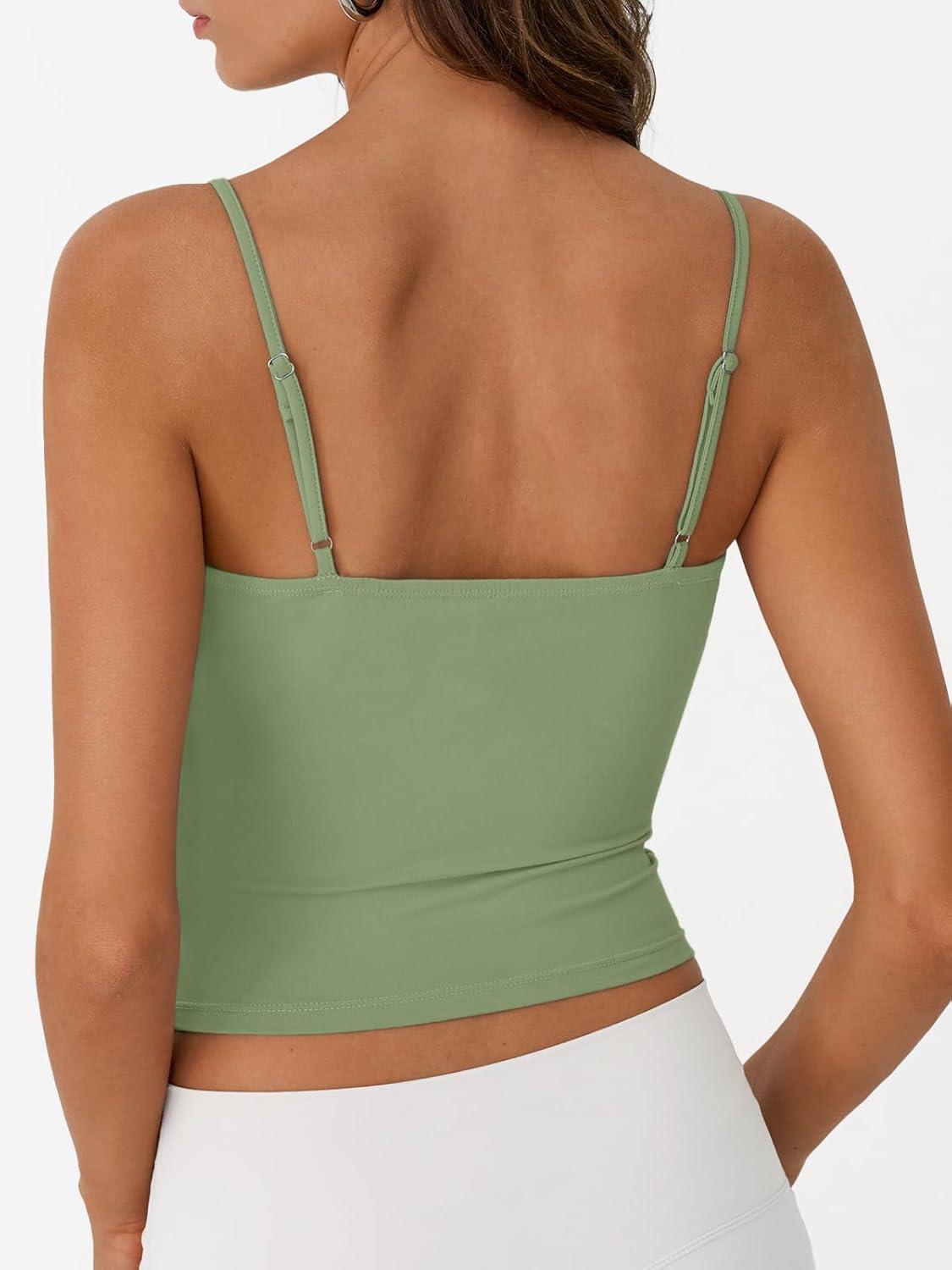 imageTrendy Queen Double Lined Tops for Women Adjustable Camisole Summer Teens Cute Going Out Spaghetti Strap Crop Tank TopsLightgreen