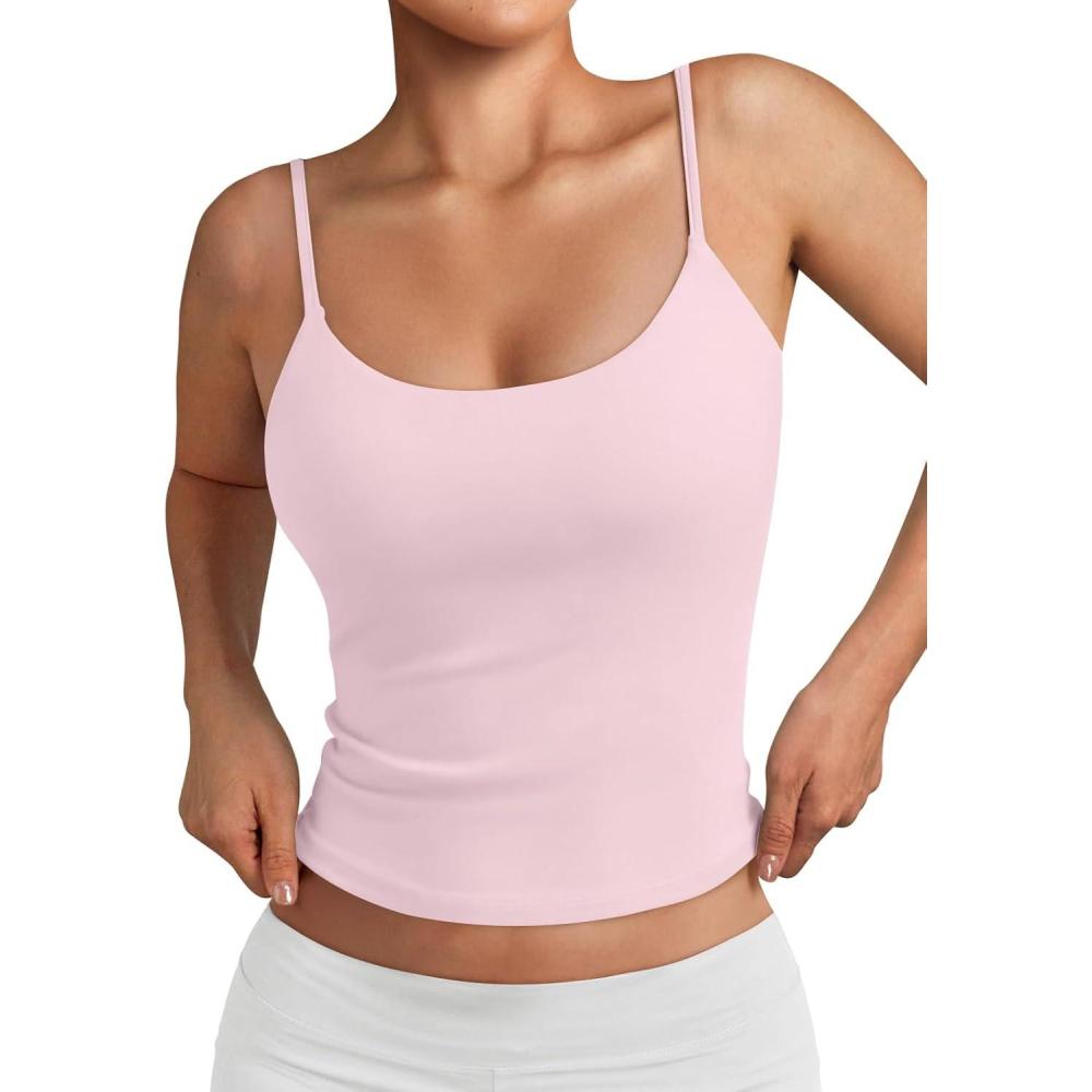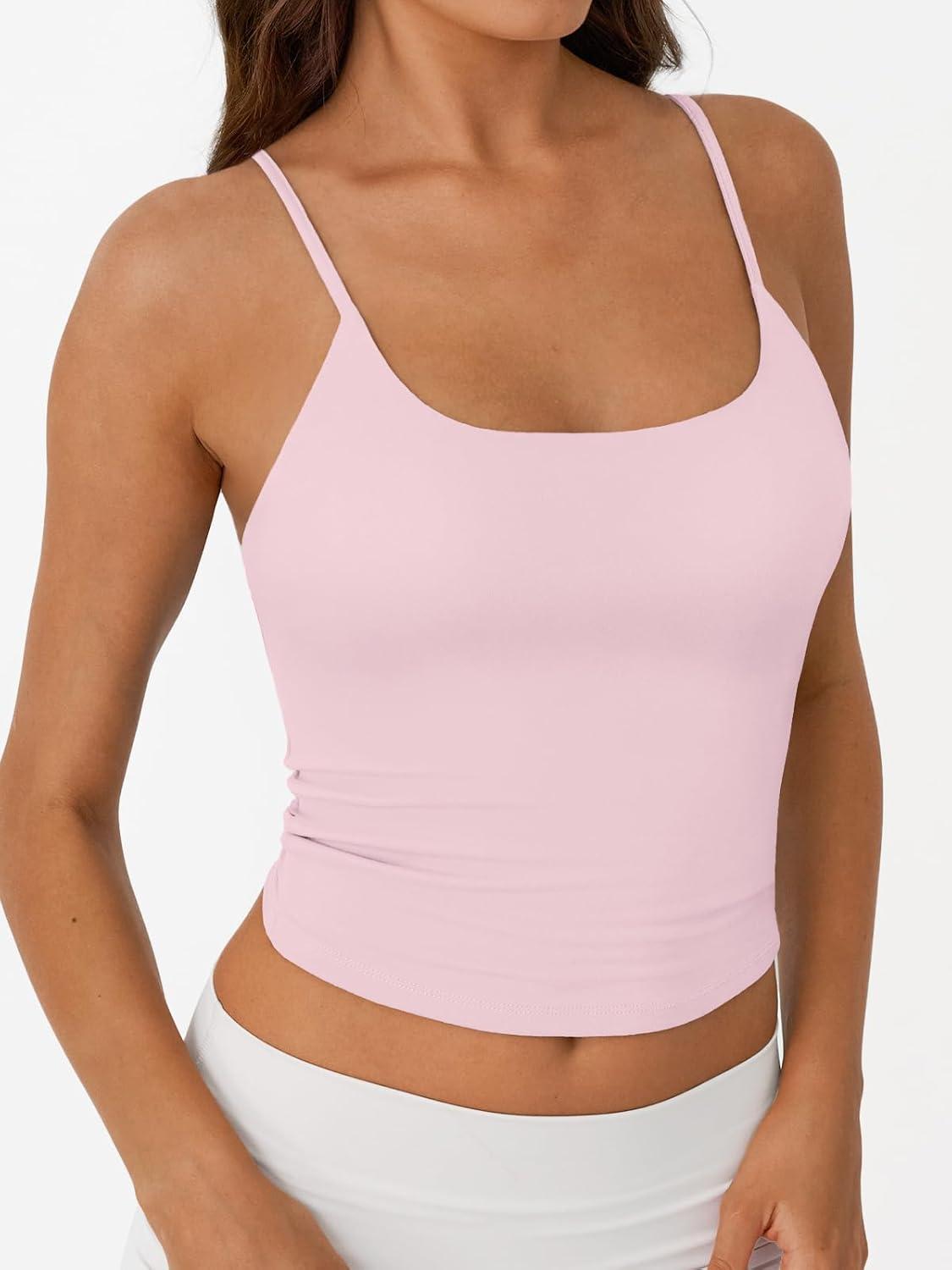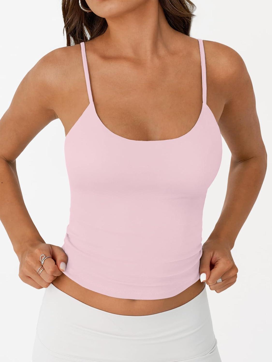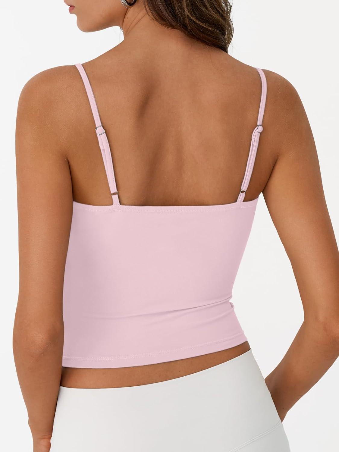 Trendy Queen Double Lined Tops for Women Adjustable Camisole Summer Teens Cute Going Out Spaghetti Strap Crop Tank Tops(Lightpink)