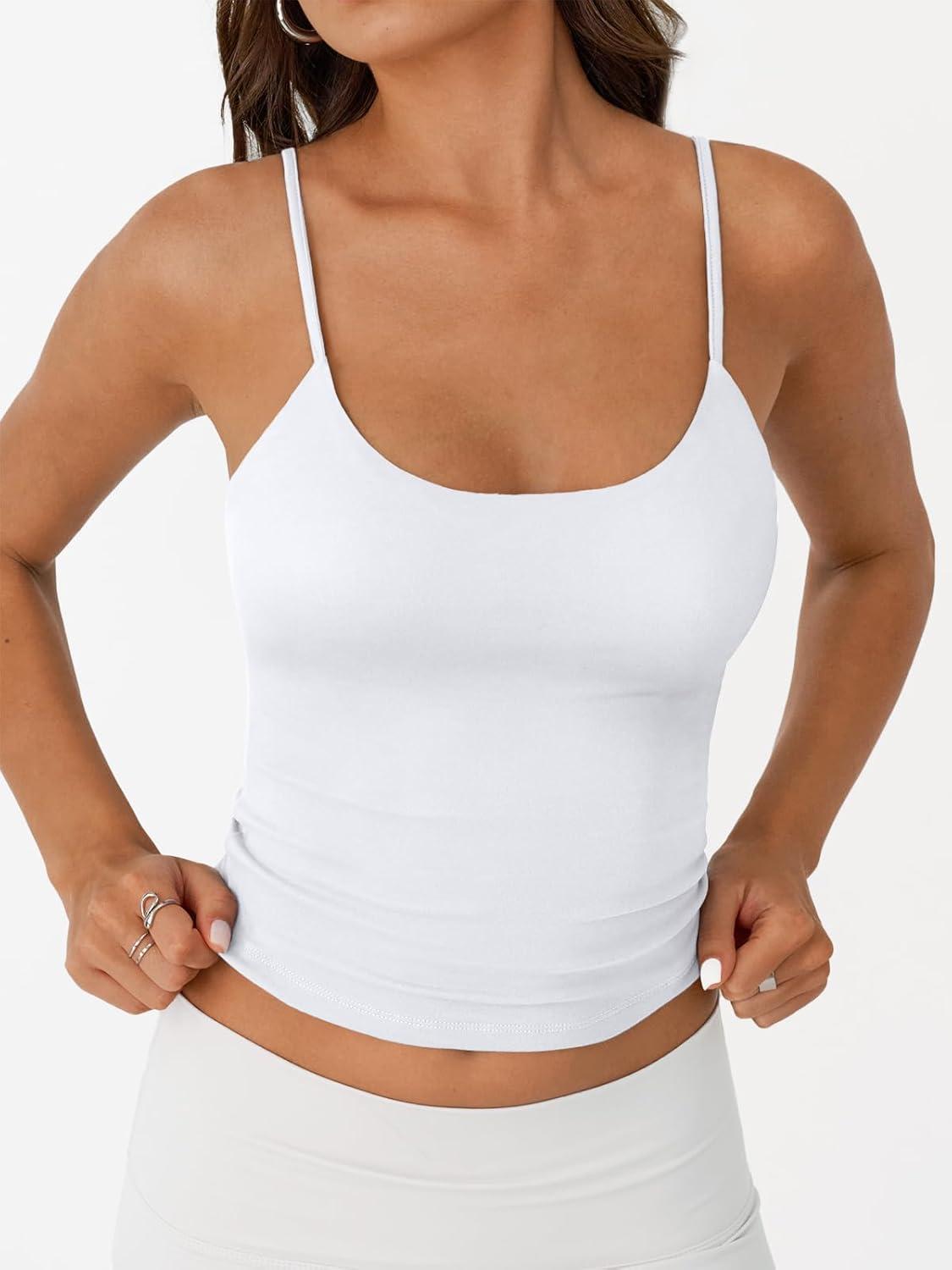 imageTrendy Queen Double Lined Tops for Women Adjustable Camisole Summer Teens Cute Going Out Spaghetti Strap Crop Tank TopsWhite