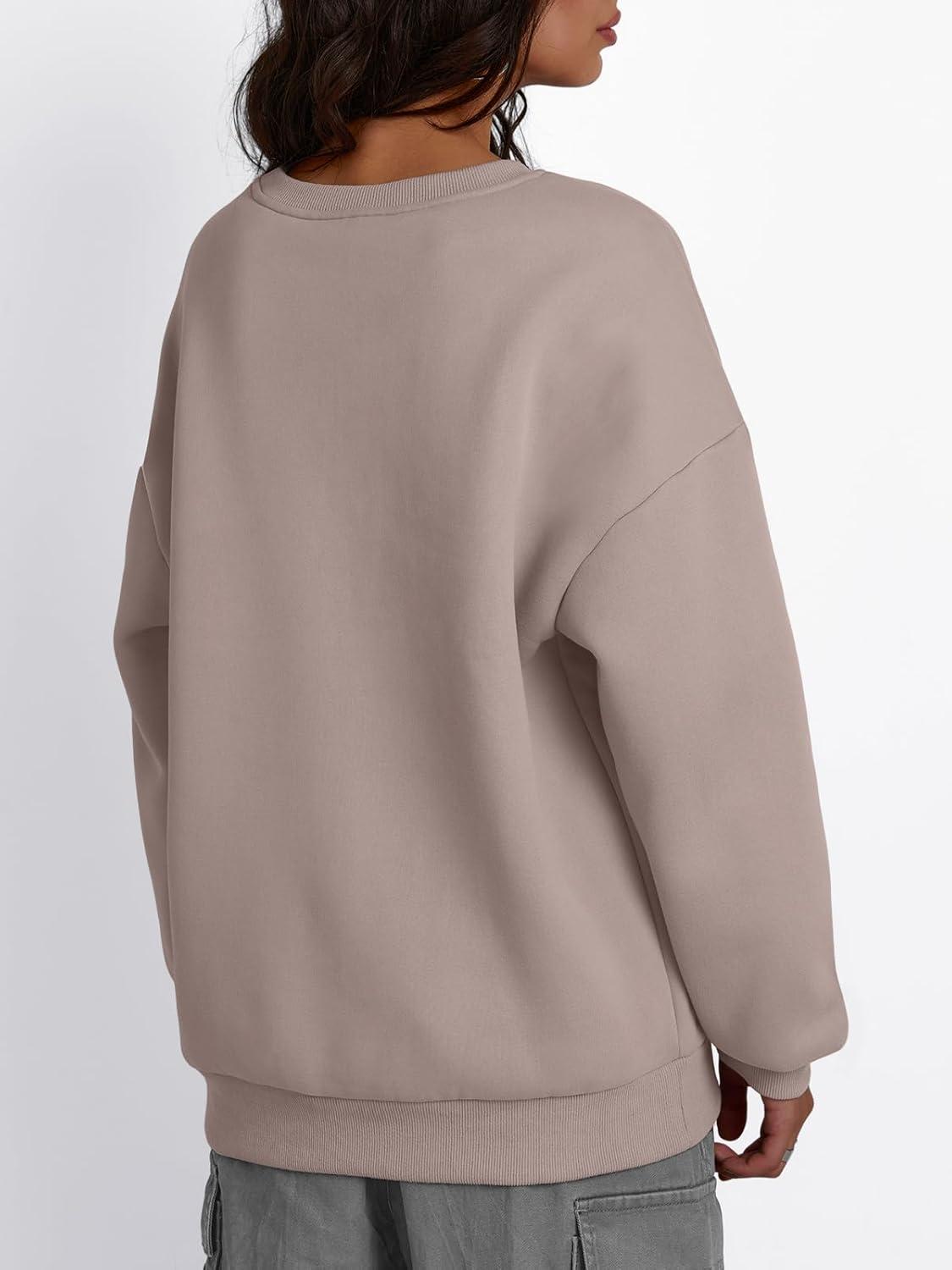 Trendy Queen Fleece Sherpa Lined Sweatshirts for Women 2025 Fall Fashion Winter Crewneck Pullover Hoodies Outfits Clothes(Coffee Grey)