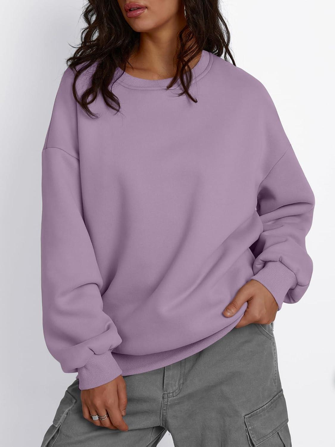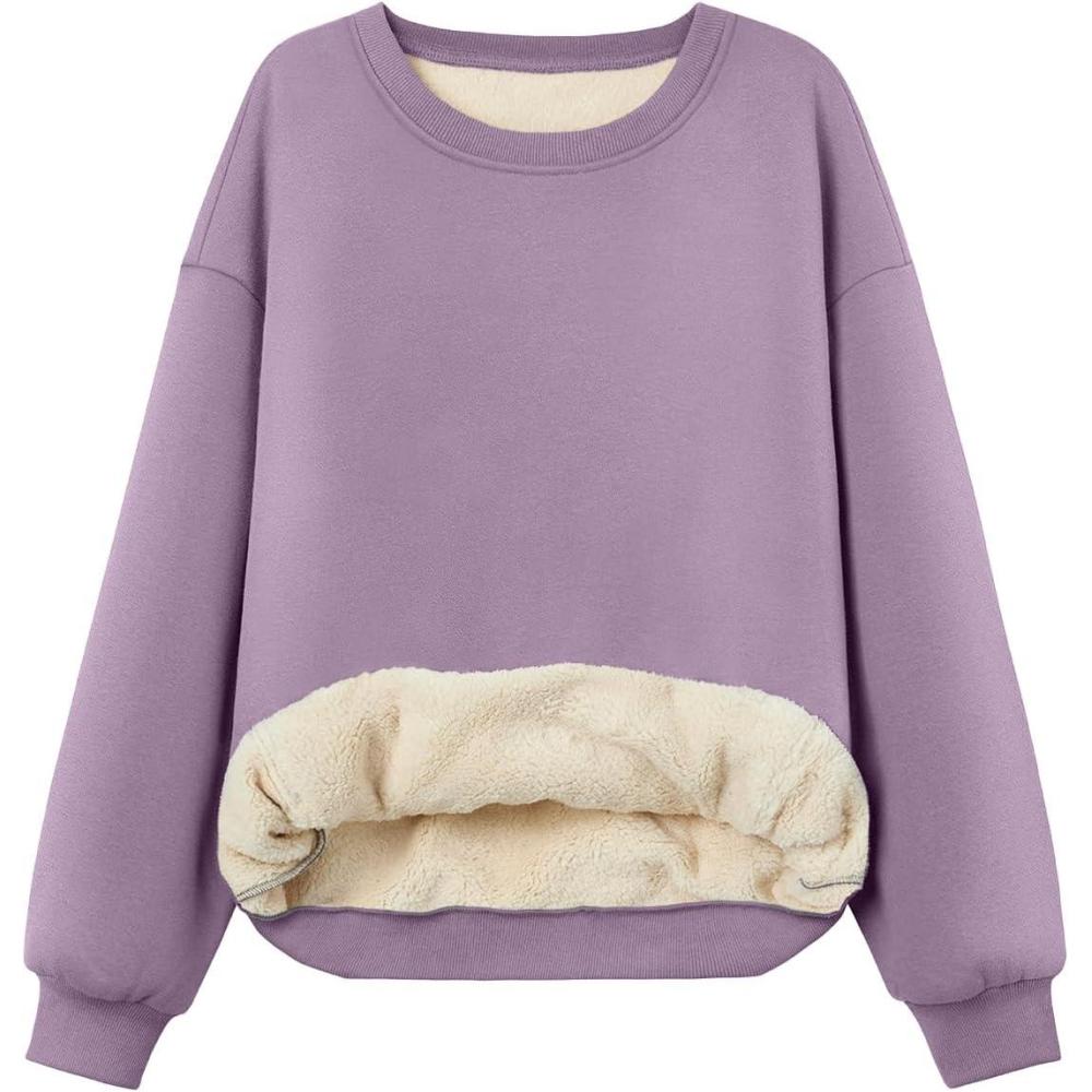 Trendy Queen Fleece Sherpa Lined Sweatshirts for Women 2025 Fall Fashion Winter Crewneck Pullover Hoodies Outfits Clothes(Purple)