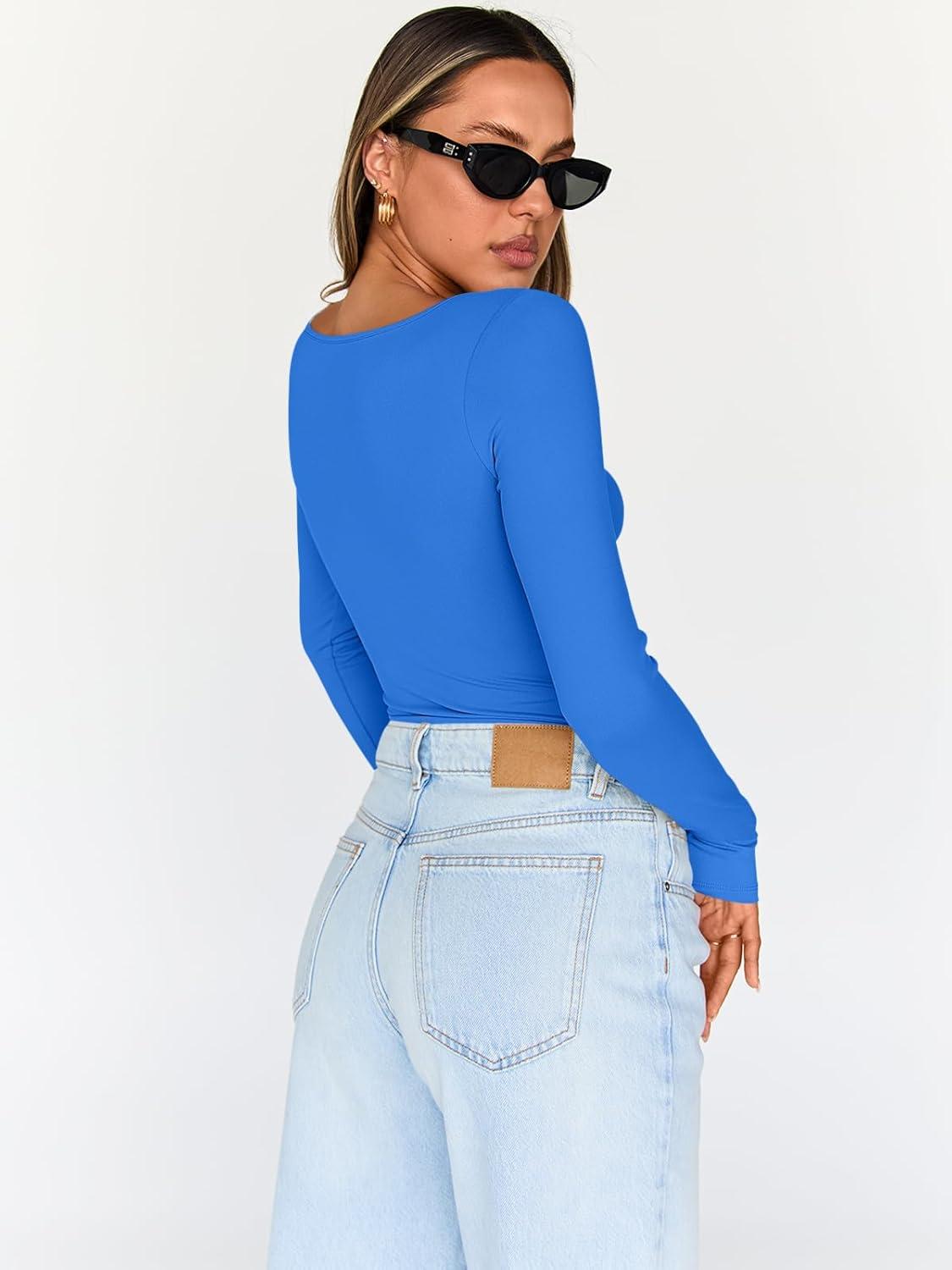 Trendy Queen Going Out Tops for Women Trendy Long Sleeve Shirts Fashion Clothing V Neck Basic Y2K Clothes Cute Shirt Corset(Blue)