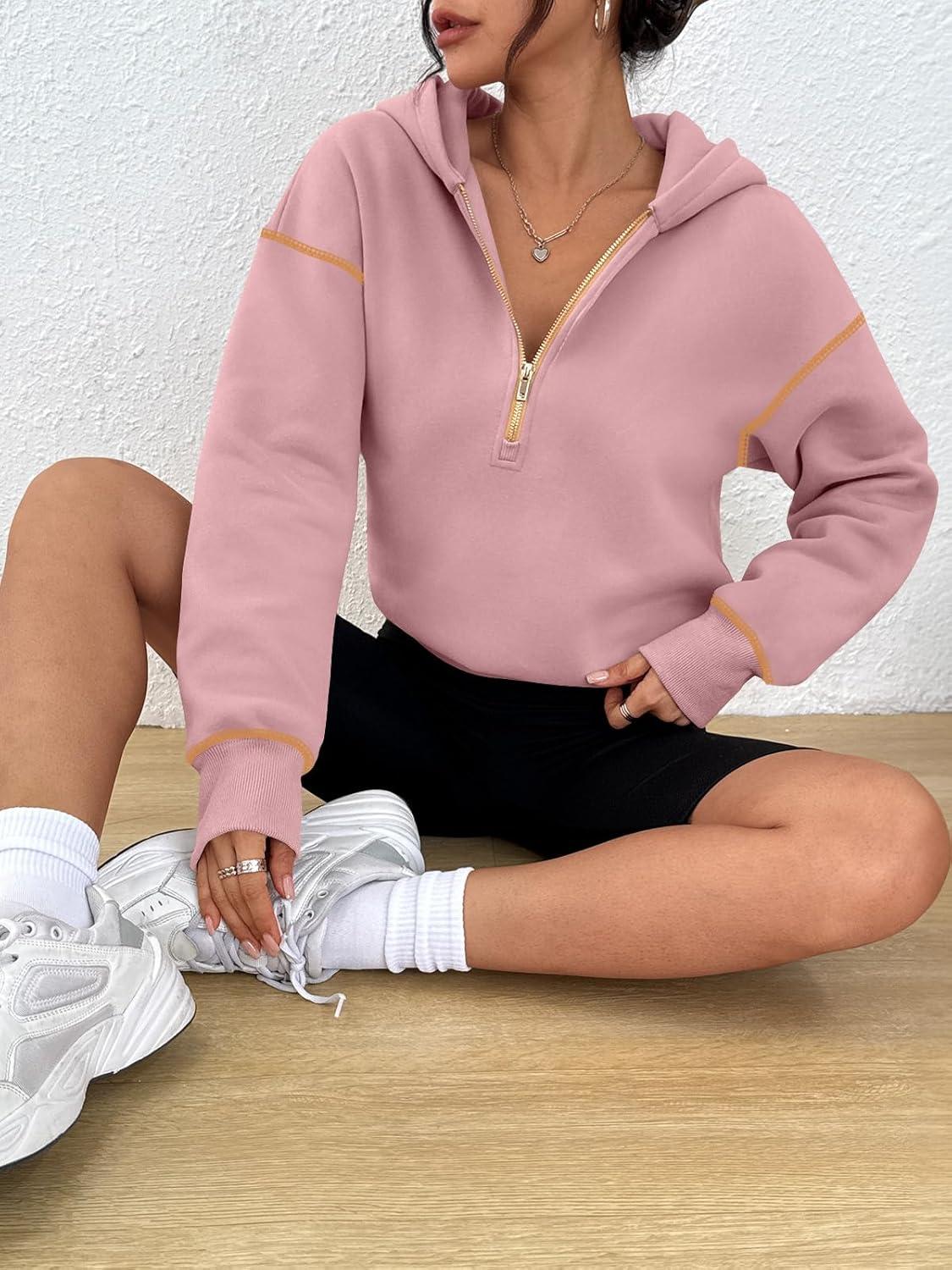 Trendy Queen Half Zip Pullover Cropped Hoodies for Women Y2k Cute Sweatshirts Jackets Fall Fashion 2025 Outfits Clothing(Pink)