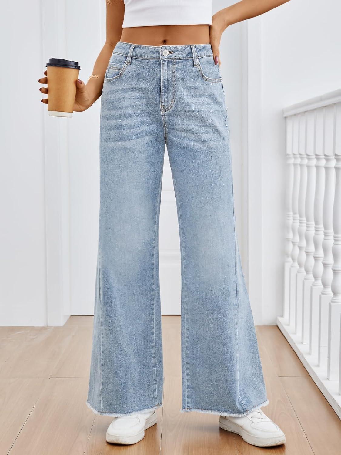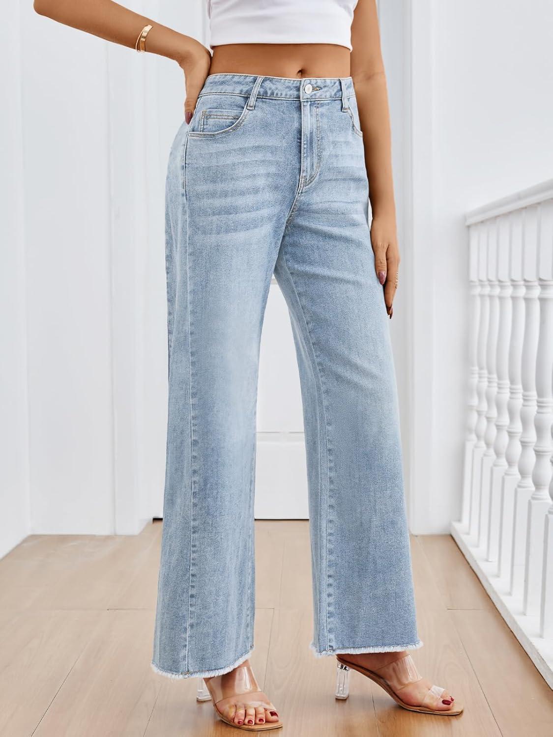 Trendy Queen Jeans for Women High Waisted Wide Straight Leg Stretchy Baggy Jeans Fashion Loose Denim Pants Fall 2025(Haze Blue)