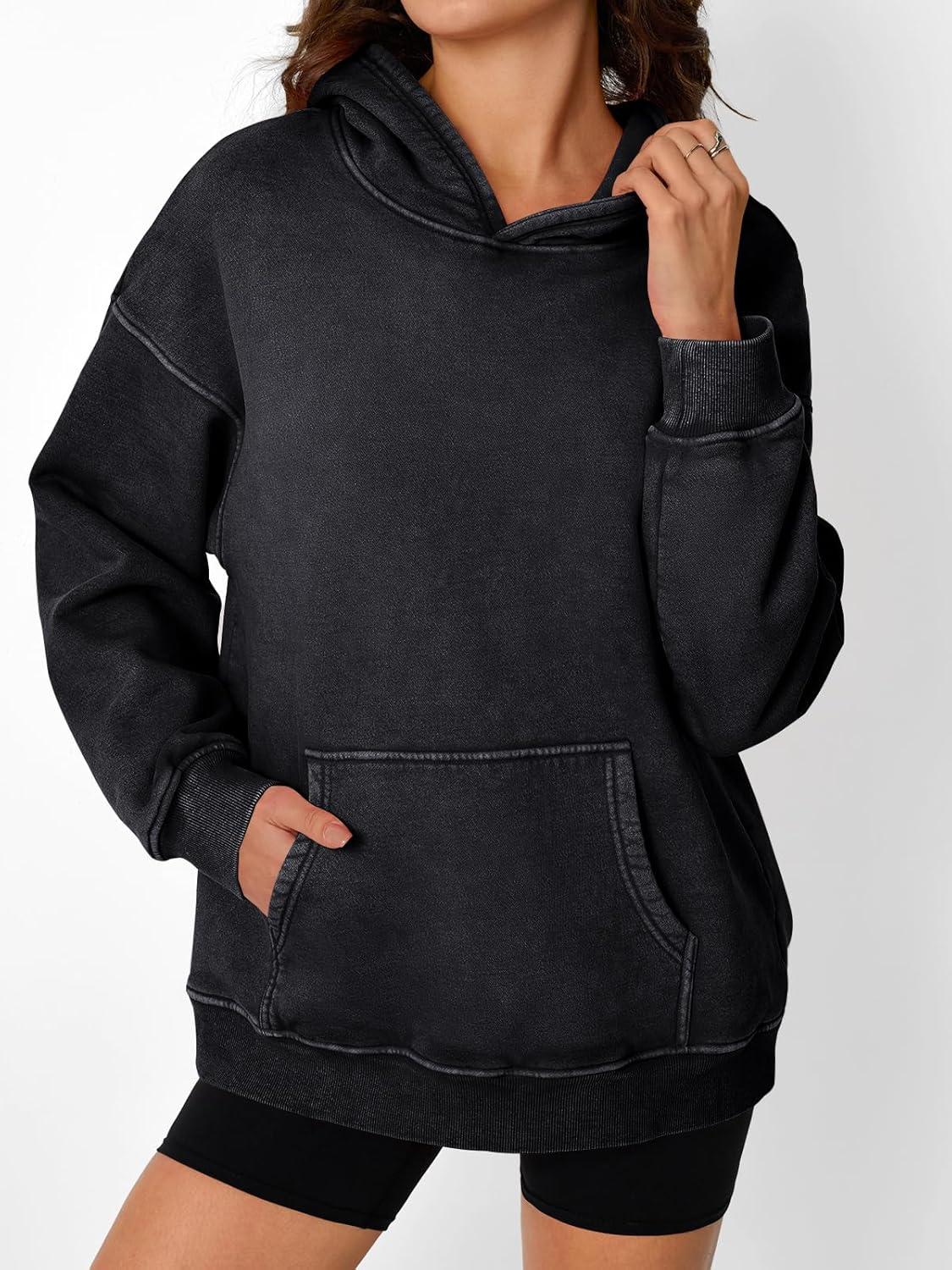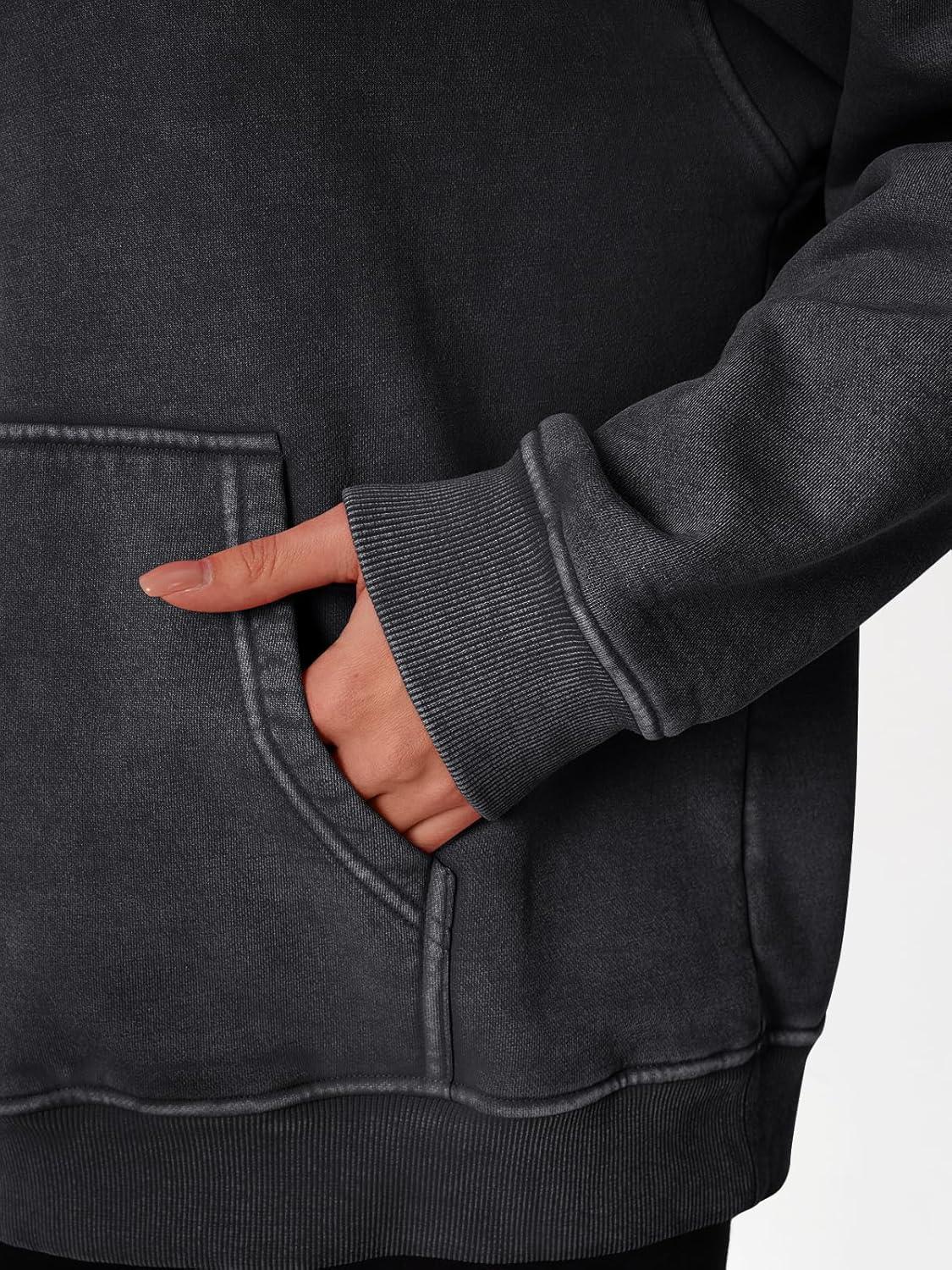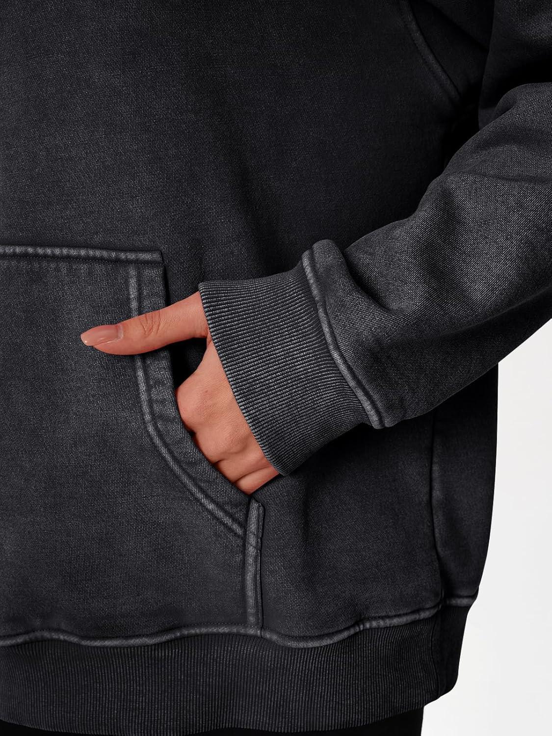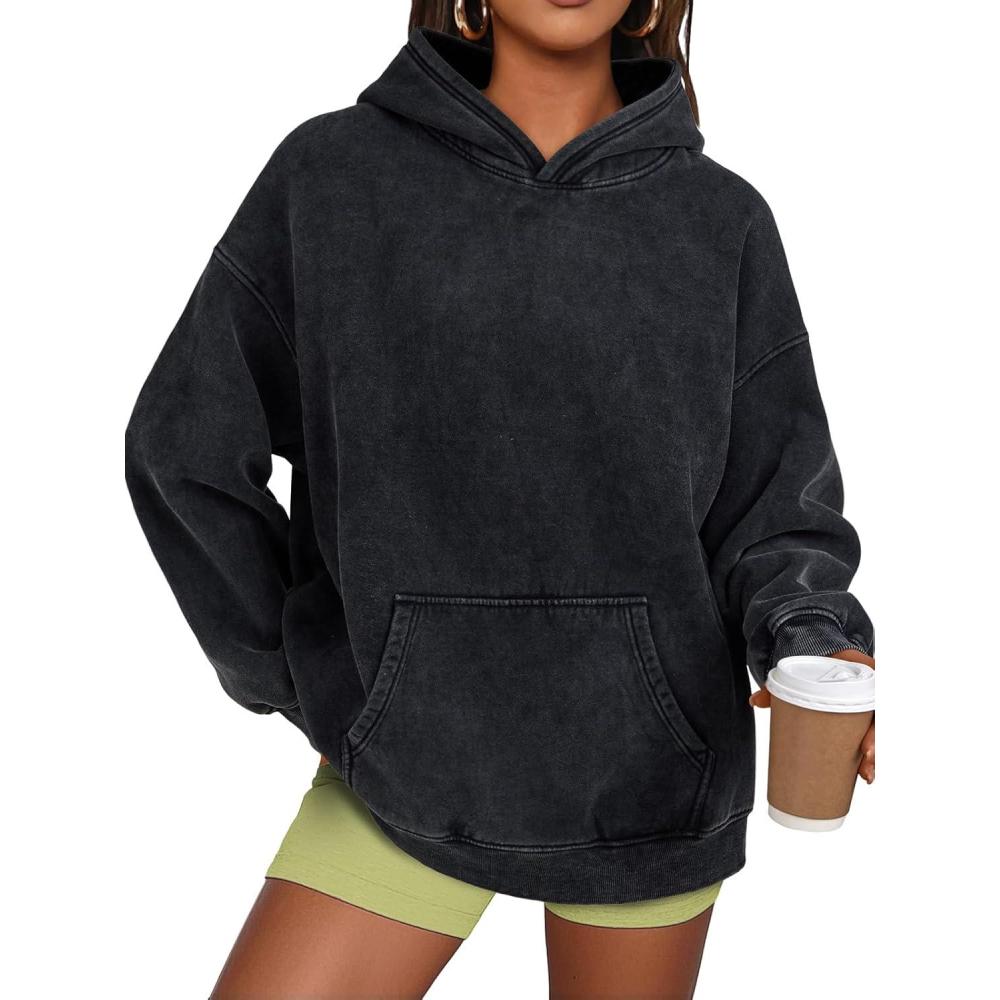 Trendy Queen Oversized Hoodies for Women Acid Wash Sweatshirt Cute Pullover Fall Winter Long Sleeve Shirts(Black)