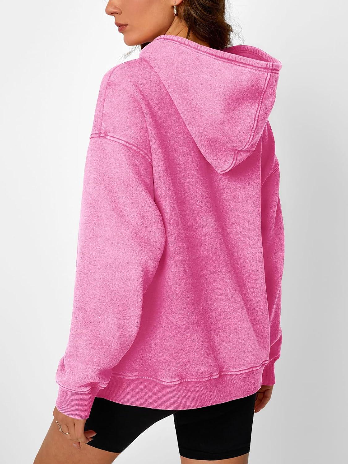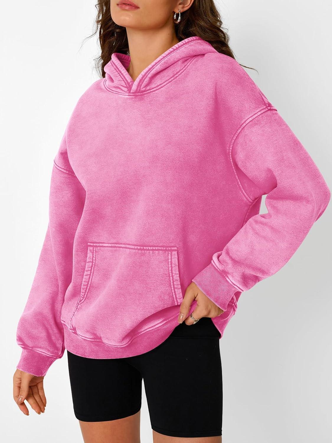 Trendy Queen Oversized Hoodies for Women Acid Wash Sweatshirt Cute Pullover Fall Winter Long Sleeve Shirts(Pink)