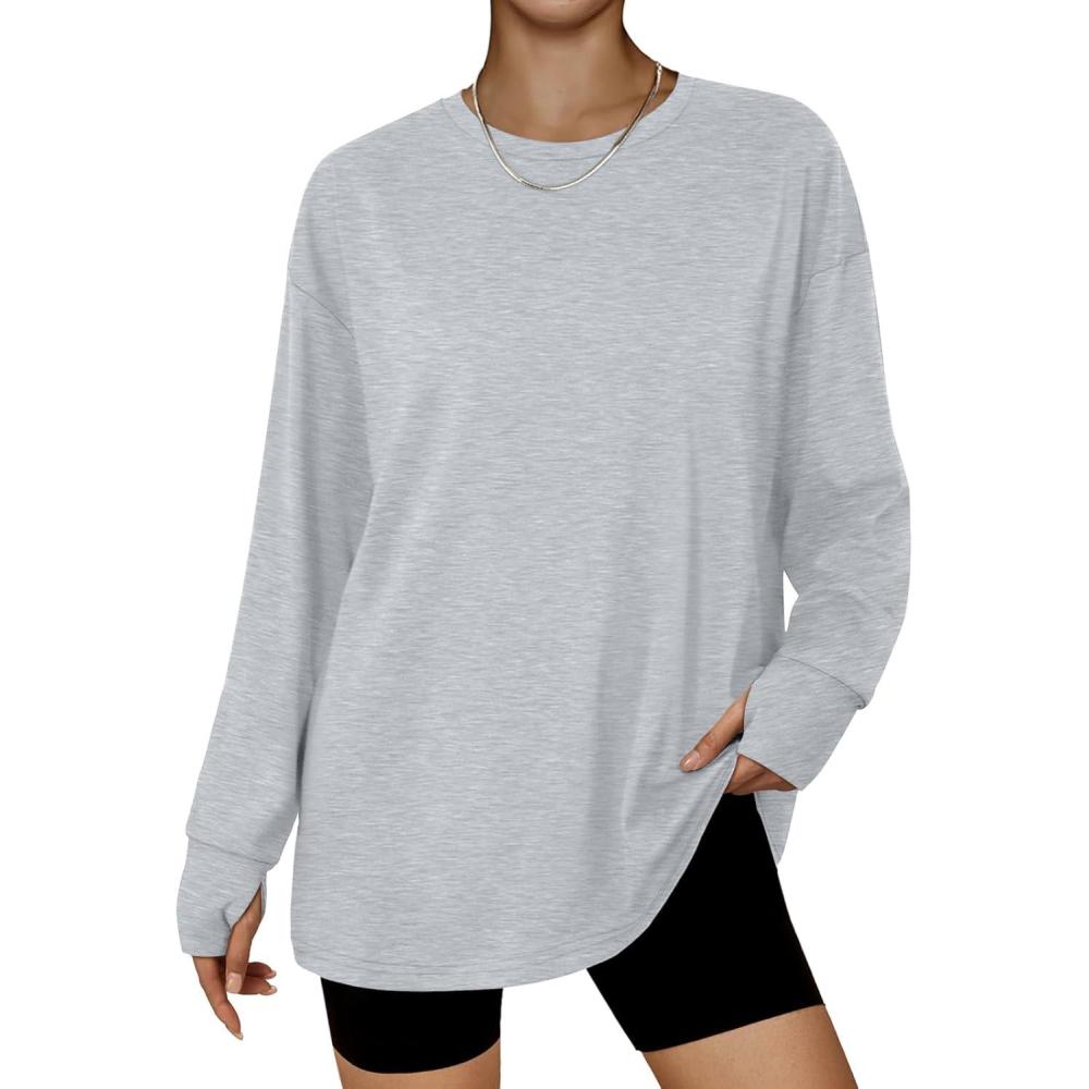 Trendy Queen Oversized Thumb Hole Tshirts for Women Long Sleeve Workout Tops Fall Fashion Plus Size Gym Casual Loose Y2k Tee(Grey)