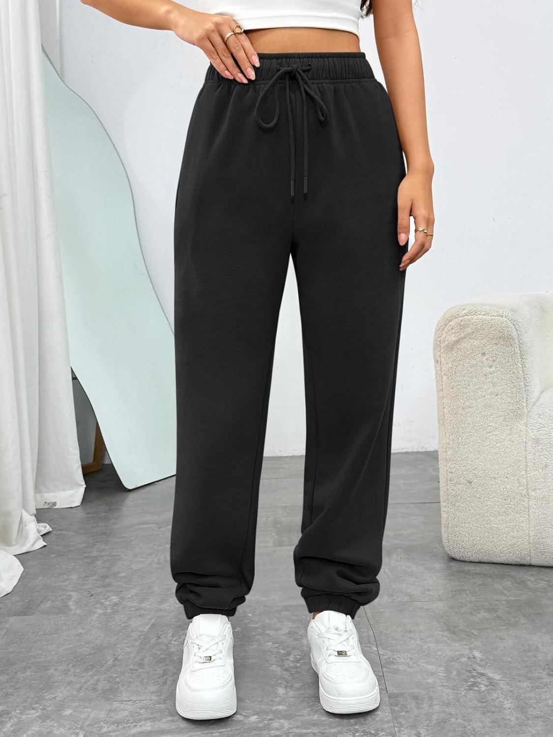 Trendy Queen Sweatpants Women Baggy Joggers with Pockets Lounge Comfy Barrel Pants Teens Cute Y2K Sports Fall Clothes 2026(Black)