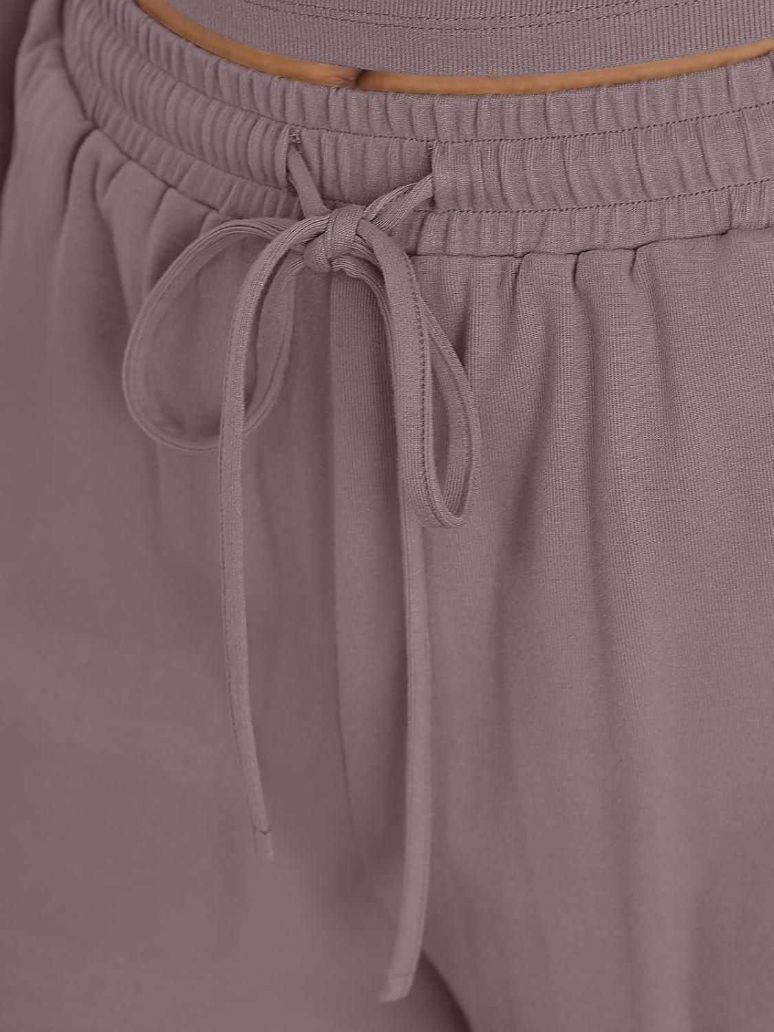 Trendy Queen Women 2 Piece Matching Lounge Sets Clothing Comfiest Wide Leg Pants 2025 Y2K Sweatsuits Fall Airport Outfit(Rose Taupe)
