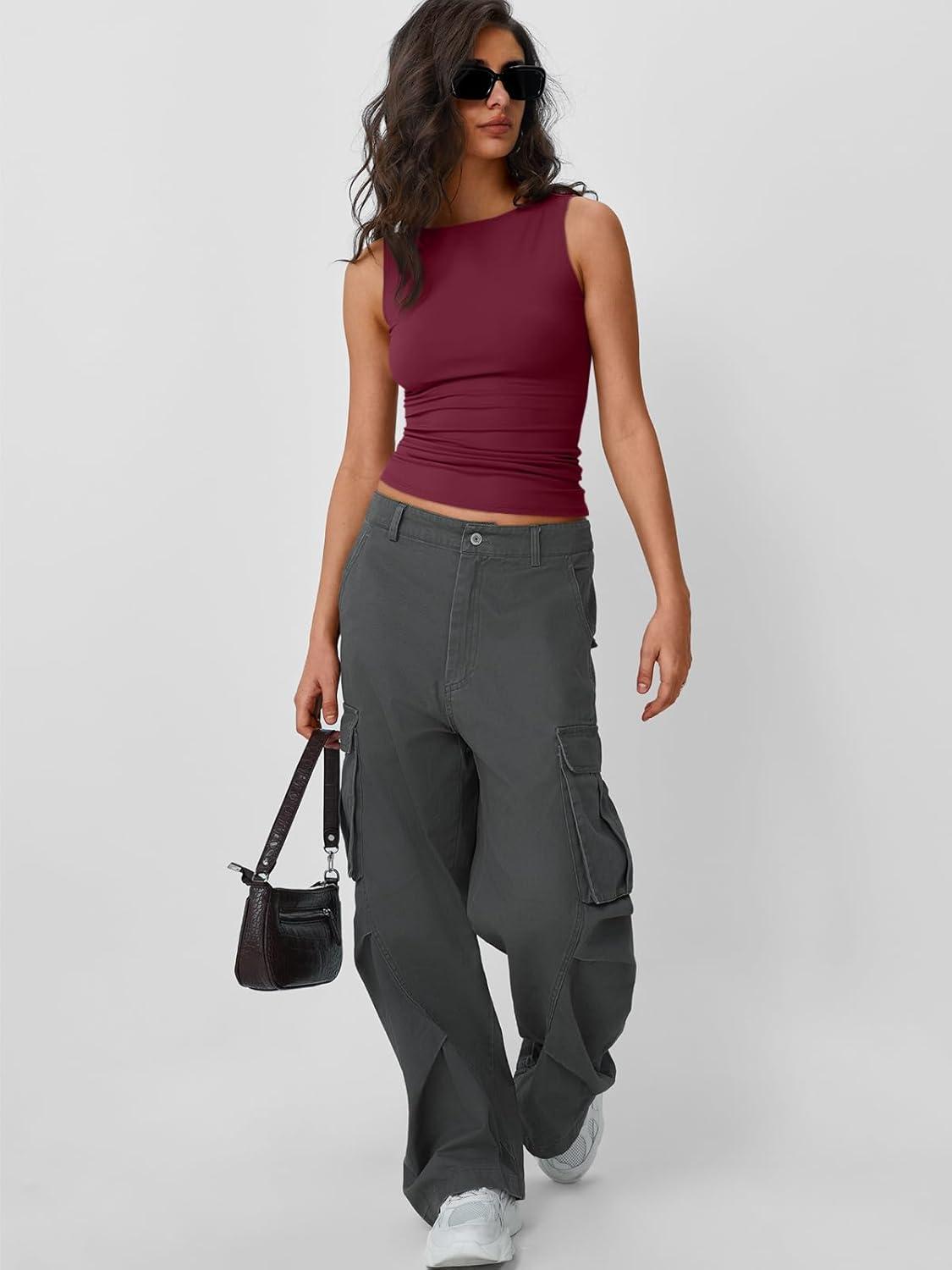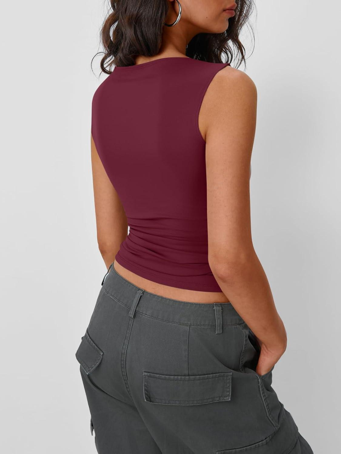 Trendy Queen Women Going Out Summer Tank Tops Spring Casual Basic Cute 2025 Sleeveless Shirt Vacation Fashion Outfit Clothes(Wine Red)