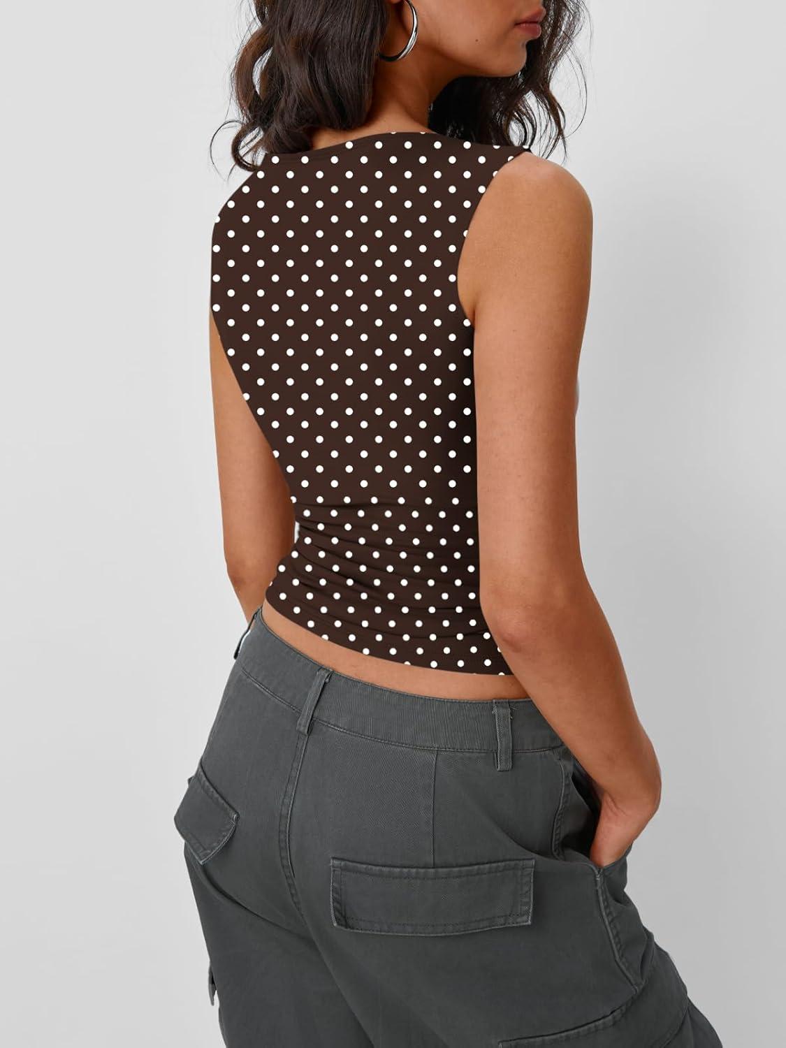 Trendy Queen Women Going Out Summer Tank Tops Spring Casual Basic Cute 2026 Sleeveless Shirt Vacation Fashion Outfit Clothes(Browndots)