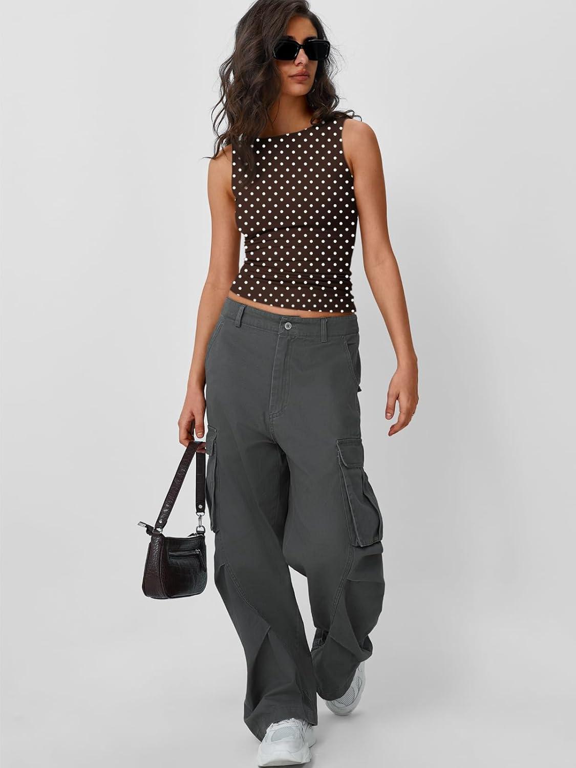 Trendy Queen Women Going Out Summer Tank Tops Spring Casual Basic Cute 2026 Sleeveless Shirt Vacation Fashion Outfit Clothes(Blackdots)