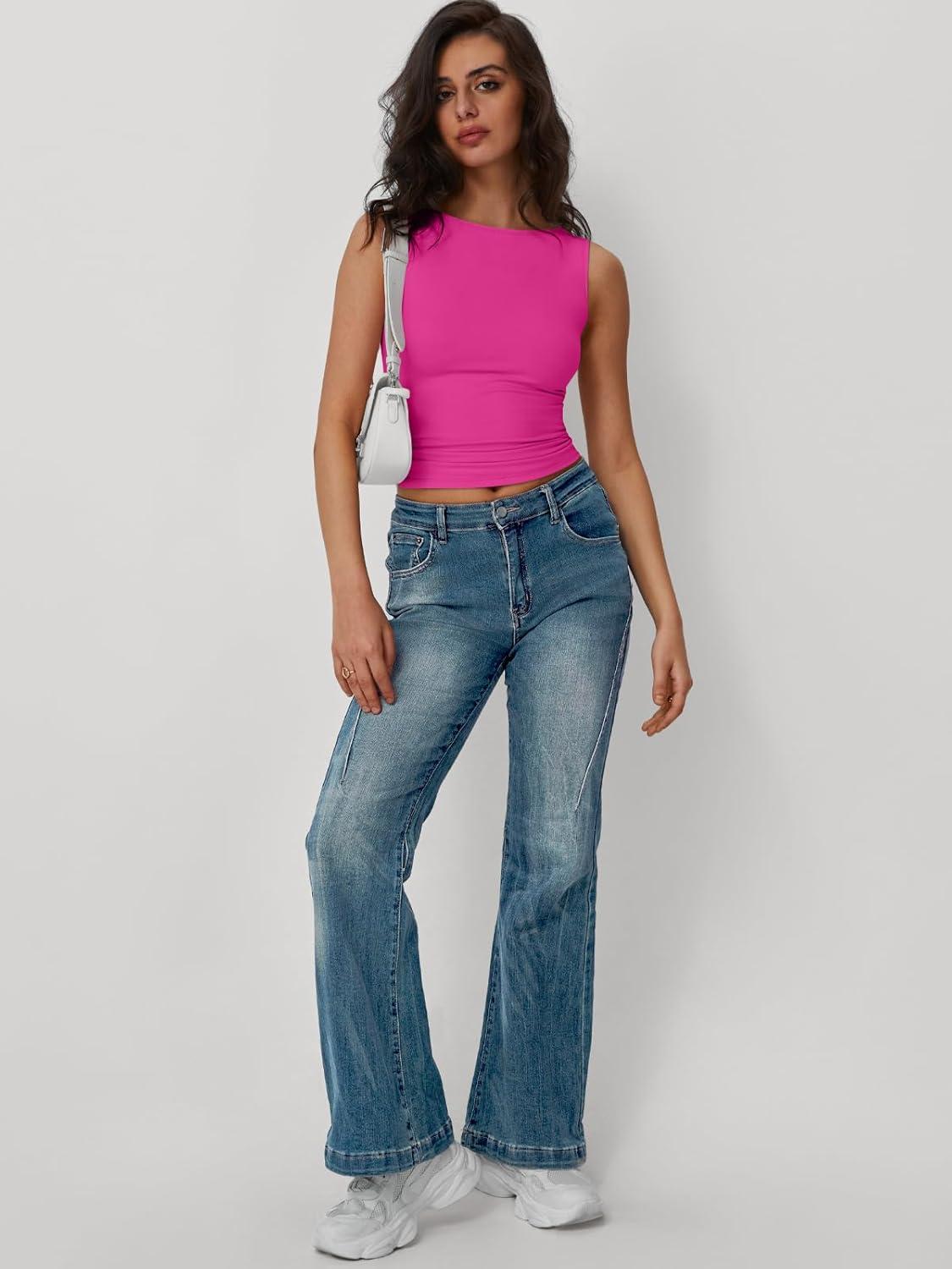 Trendy Queen Women Going Out Summer Tank Tops Spring Casual Basic Cute 2026 Sleeveless Shirt Vacation Fashion Outfit Clothes(Hot Pink)