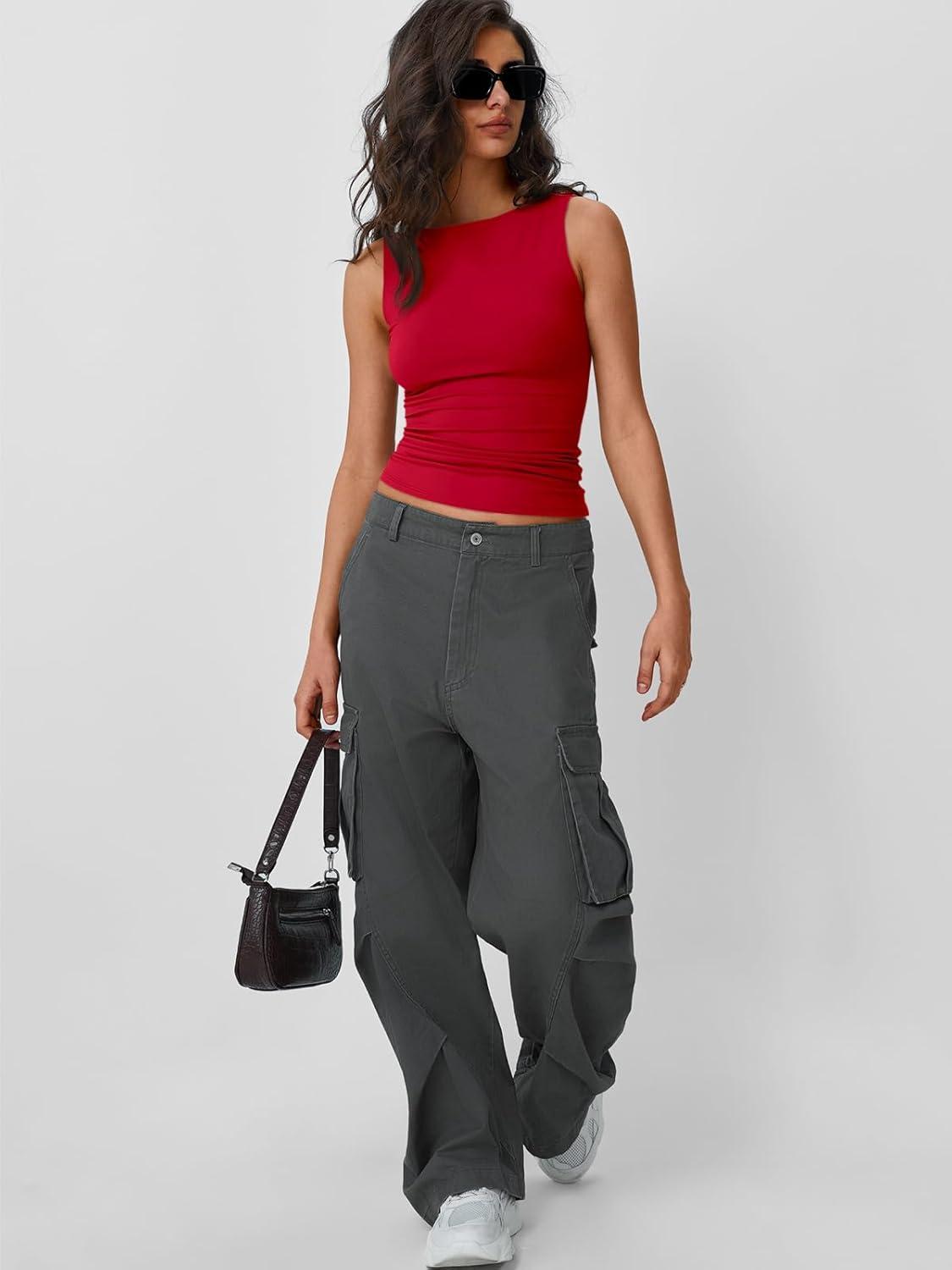 Trendy Queen Women Going Out Summer Tank Tops Spring Casual Basic Cute 2026 Sleeveless Shirt Vacation Fashion Outfit Clothes(Red)