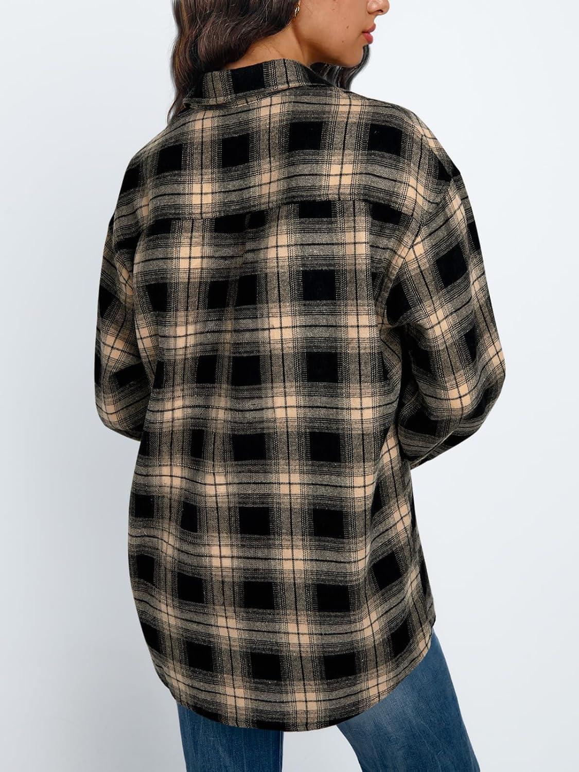 Trendy Queen Women Shackets Long Sleeve Flannel Shirts Button Down Blouse Plaid Tops Fall Outfits Fashion Winter Jackets 2025(Khaki)