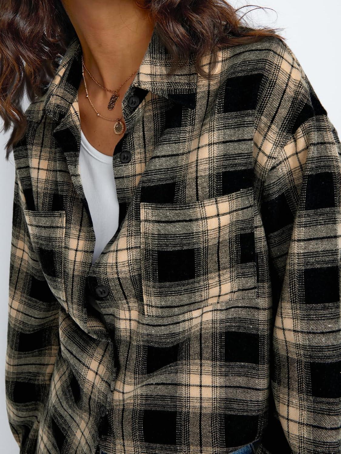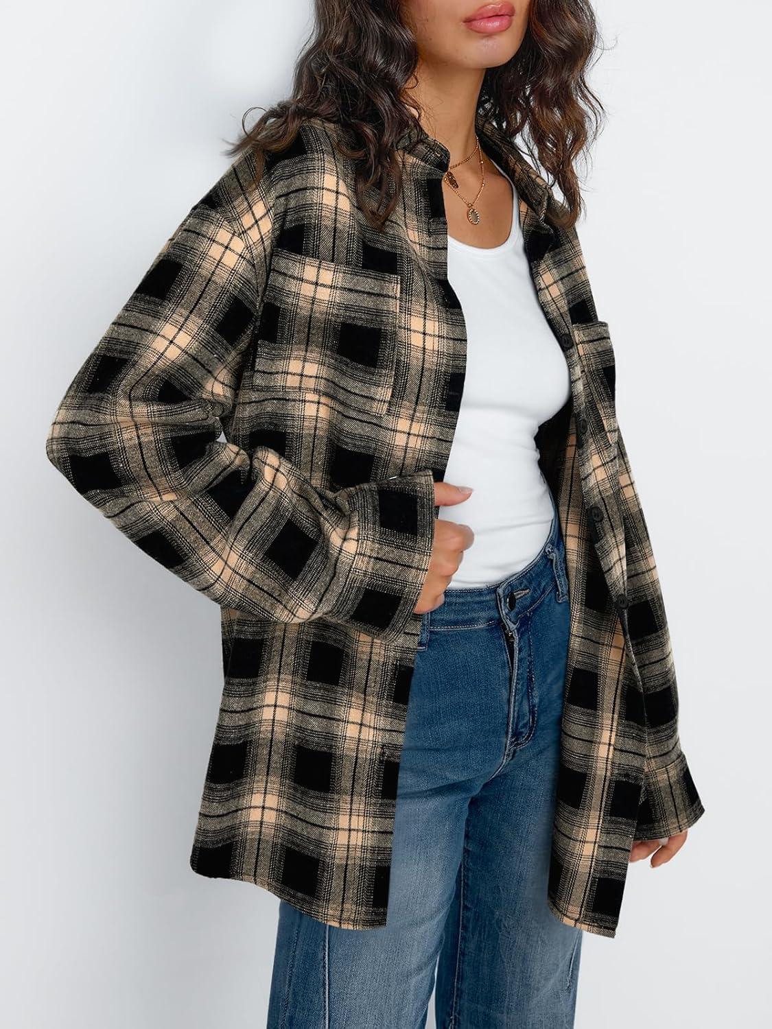 Trendy Queen Womens Plaid Shackets Long Sleeve Flannel Button Down Shirts Comfy Casual Tops Fall Outfits Fashion Winter Jackets Clothes 2024