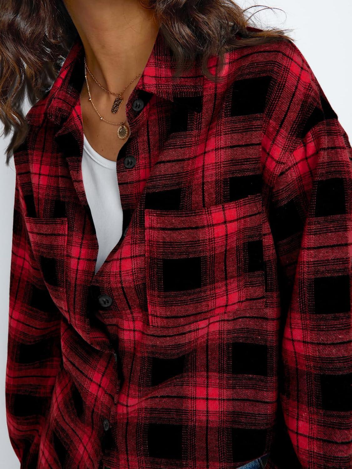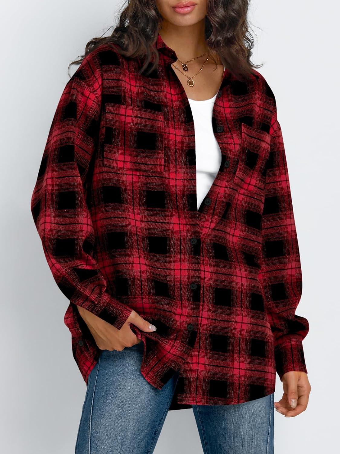 Trendy Queen Women Shackets Long Sleeve Flannel Shirts Button Down Blouse Plaid Tops Fall Outfits Fashion Winter Jackets 2025(Red)