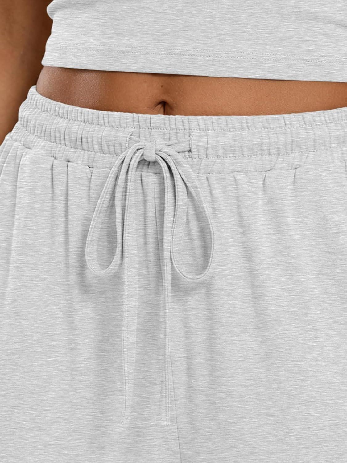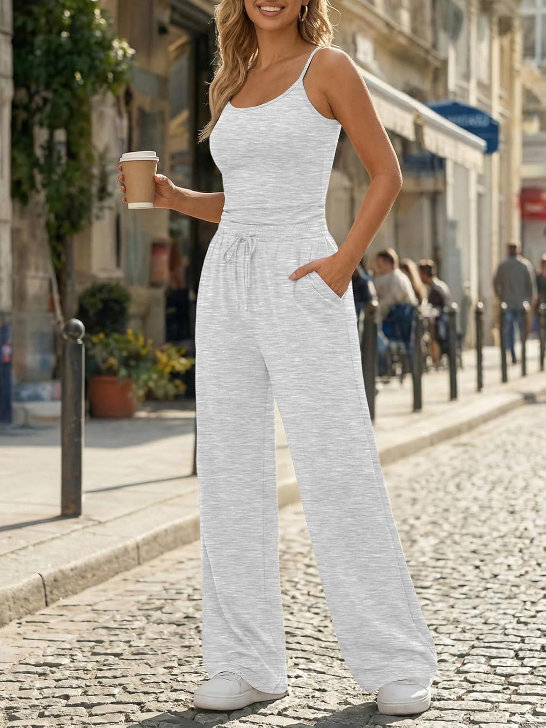 Trendy Queen Women’s 2 Piece Lounge Set Spring Outfits – Camisole Top & Wide Leg Pants(Oatmeal Grey)