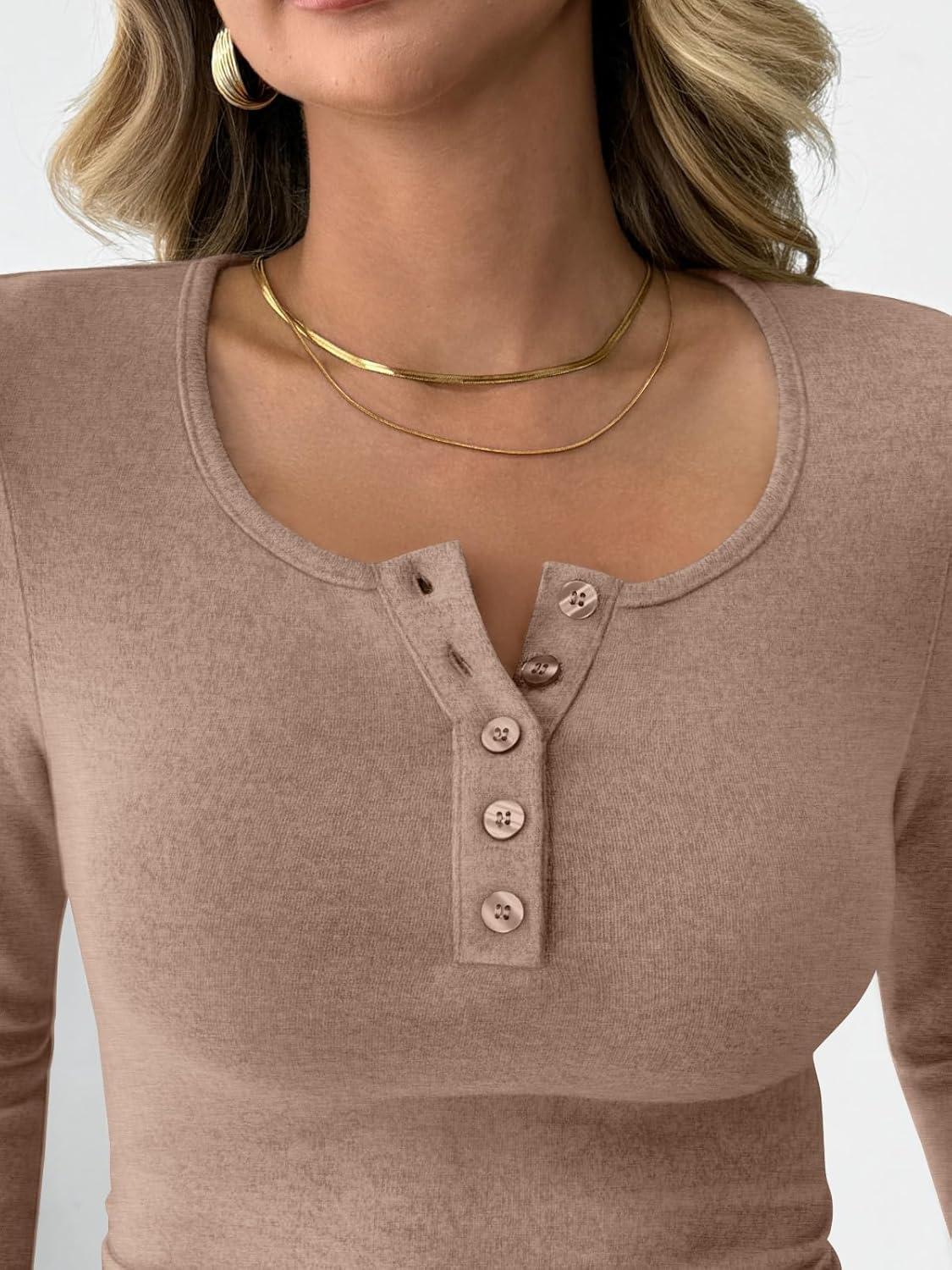 imageTrendy Queen Womens 2 Piece Matching Lounge Sets Fall Fashion Outfits Henley Neck Sweater Top Wide Leg Pants Sweat SuitsBrown