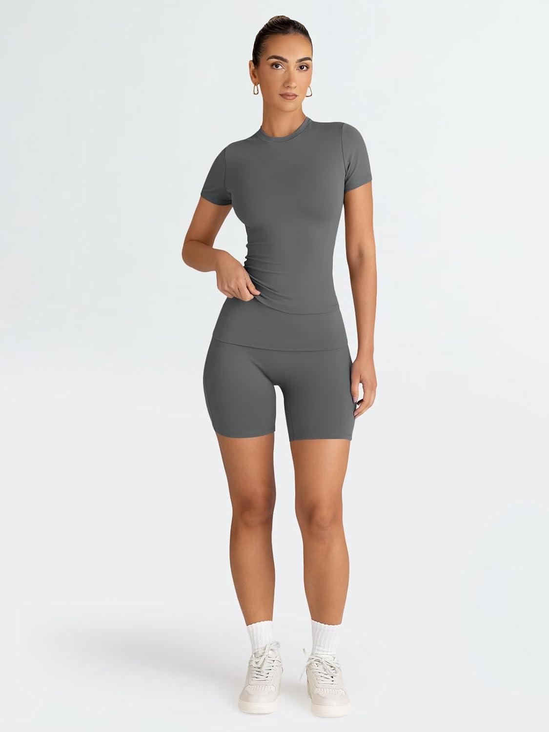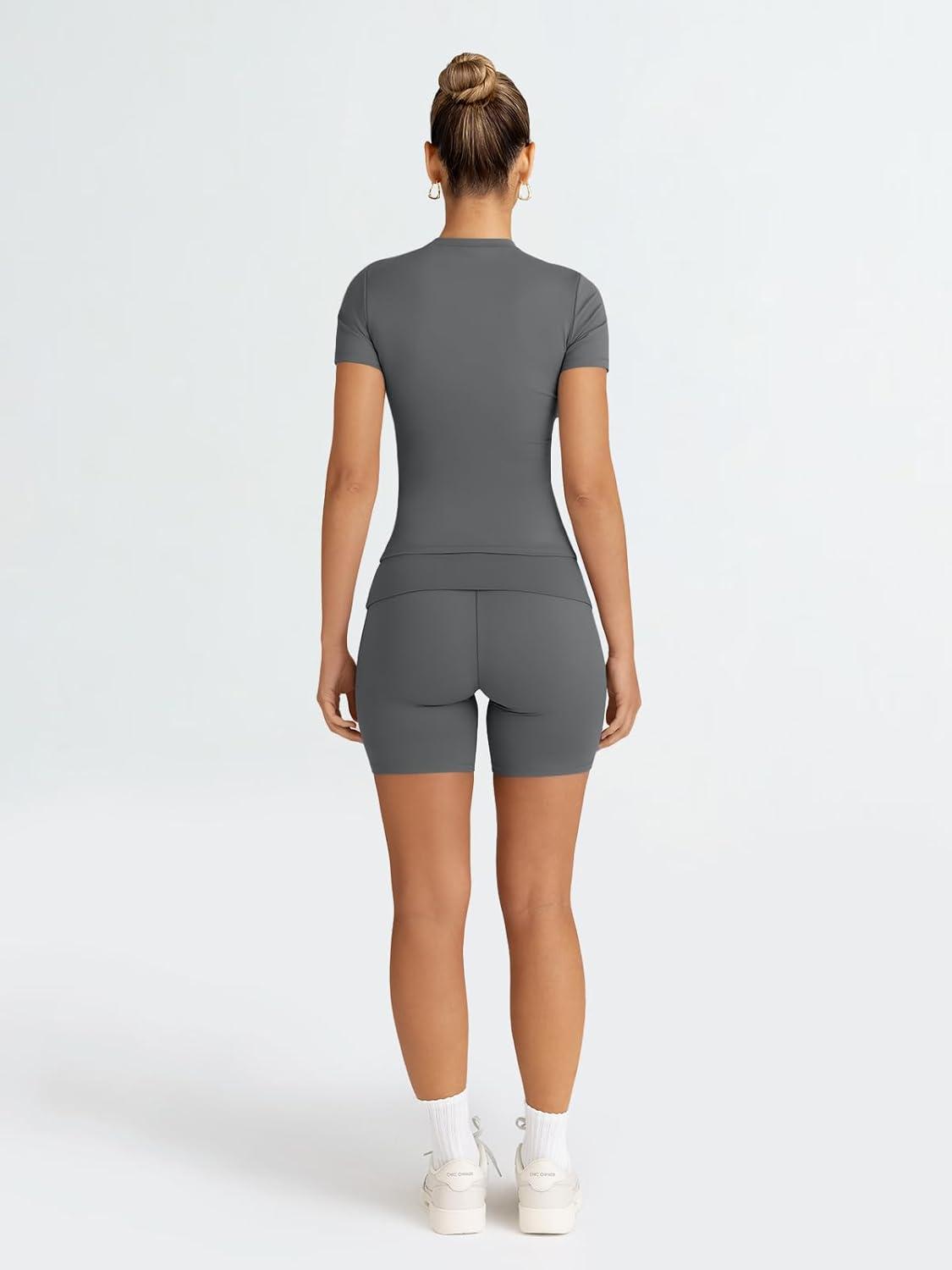 Trendy Queen Womens 2 Piece Workout Sets Short Matching Lounge Sets Summer Clothes Going Out Gym Outfits(Darkgrey)