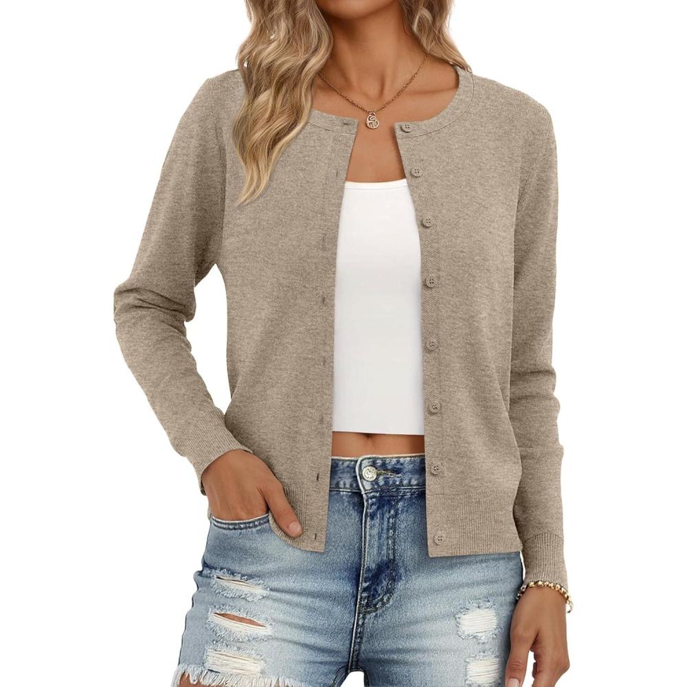 imageTrendy Queen Womens Cardigan Sweaters Lightweight Crew Neck Outfits Fall Fashion 2025 ClothingCamel