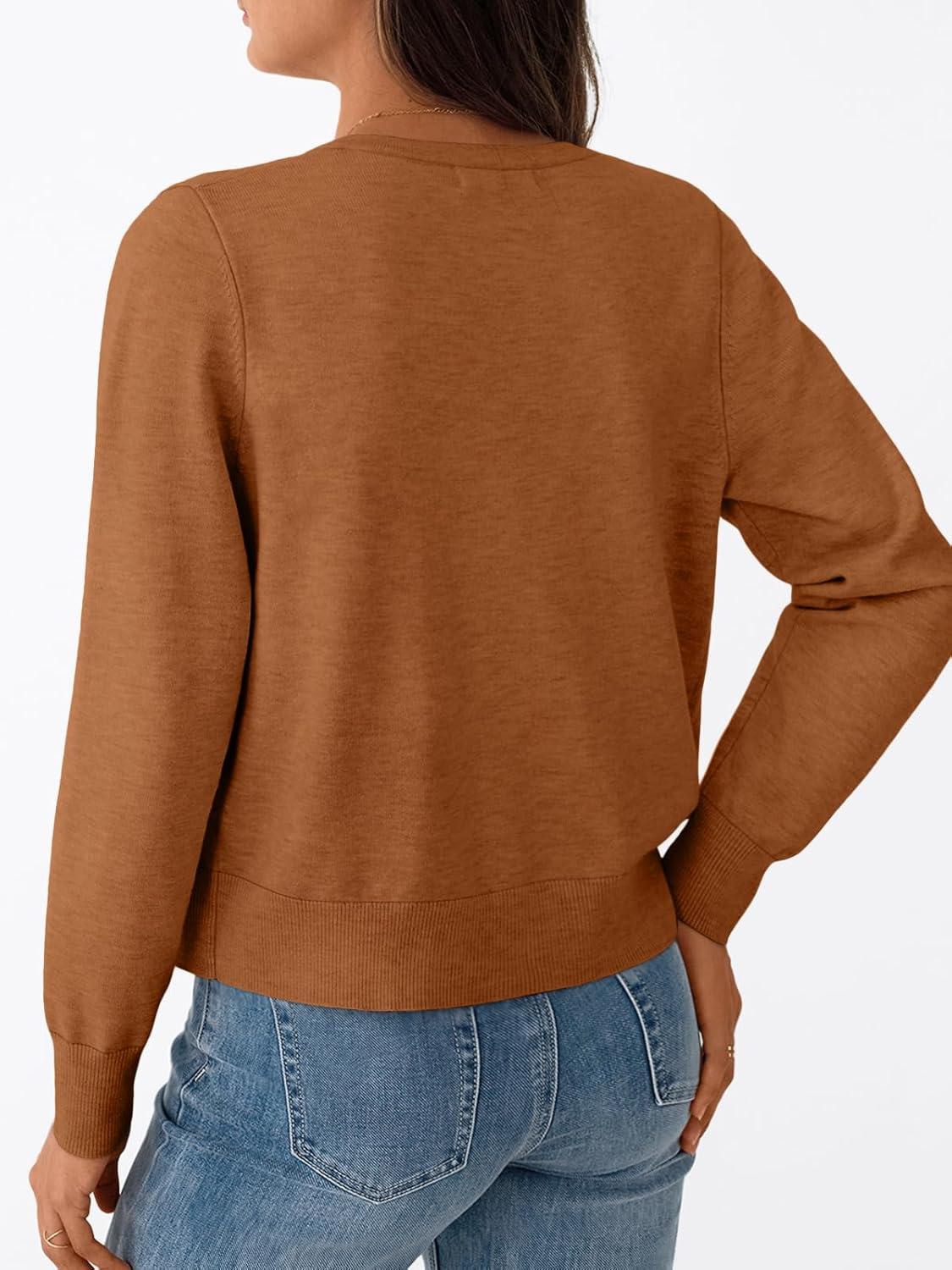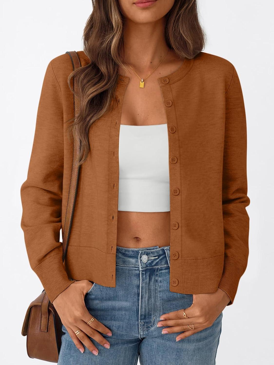 Trendy Queen Womens Cardigan Sweaters Lightweight Crew Neck Outfits Fall Fashion 2025 Clothing(Fox)