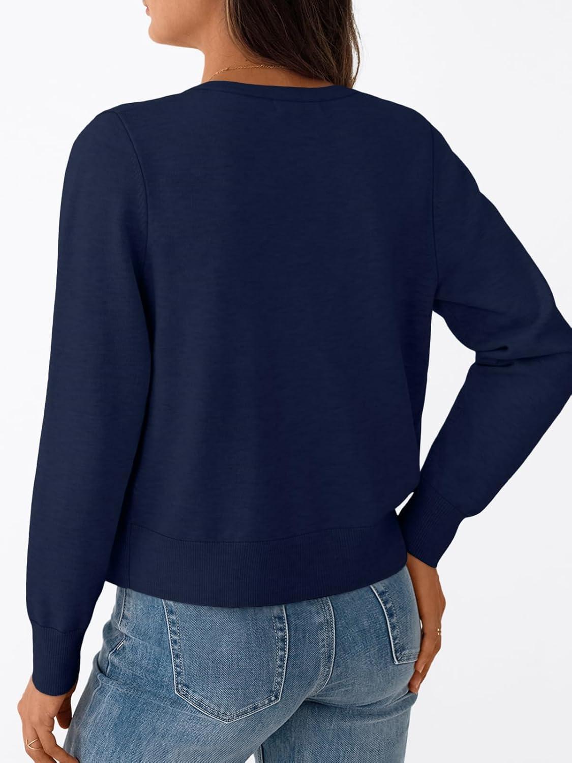 Trendy Queen Womens Cardigan Sweaters Lightweight Crew Neck Outfits Fall Fashion 2025 Clothing(Navy)