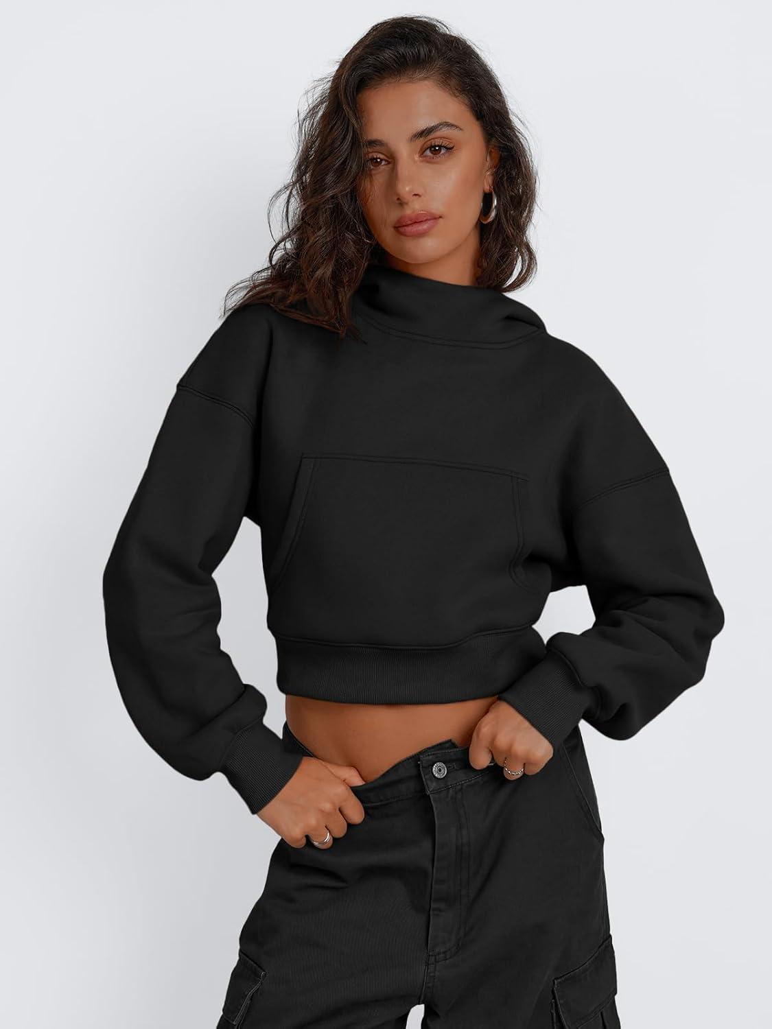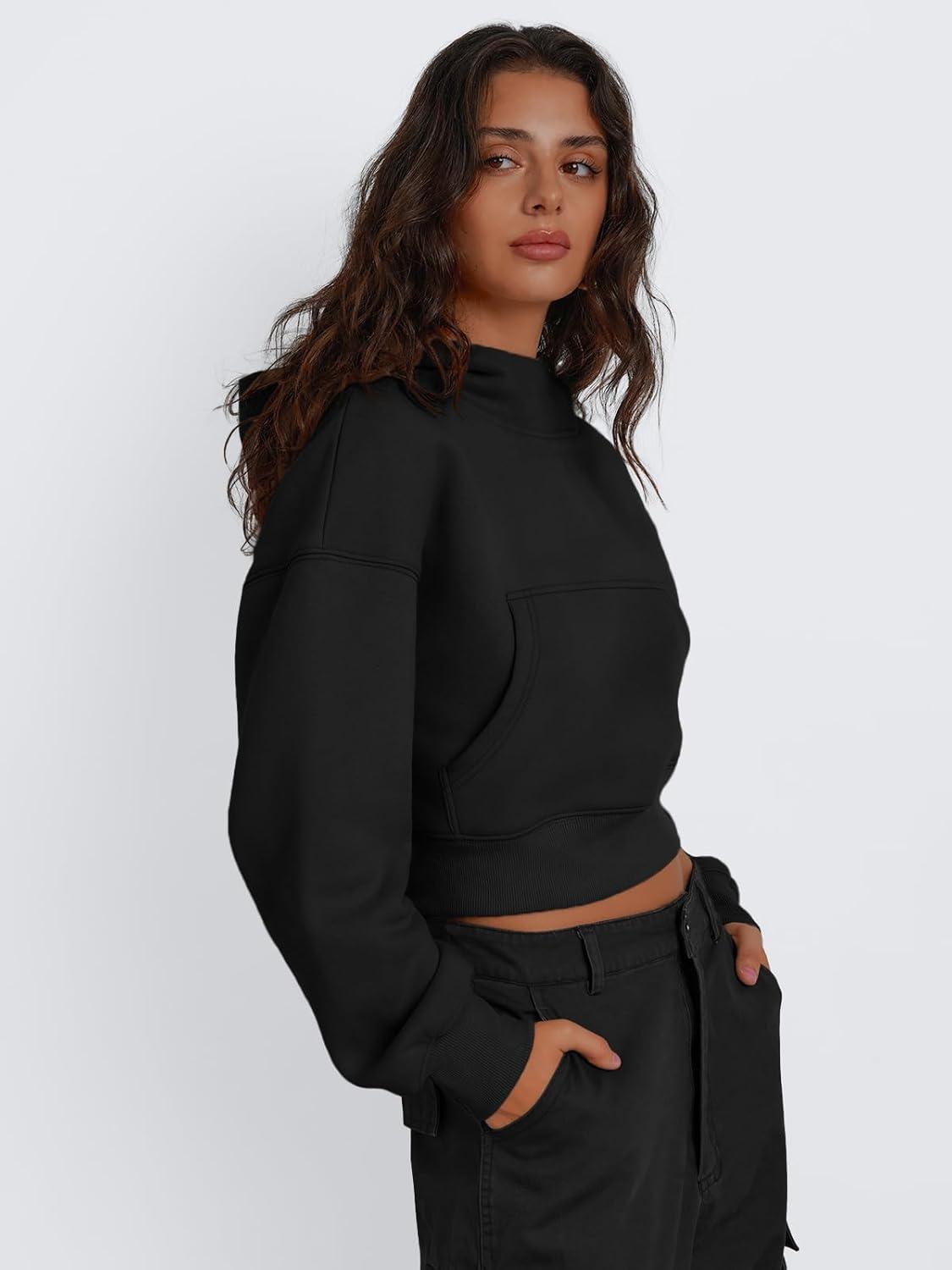 Trendy Queen Womens Cropped Hoodie Long Sleeve Sweatshirts Fall Fashion 2024 Casual Y2k Outfits Winter Clothes(Black)