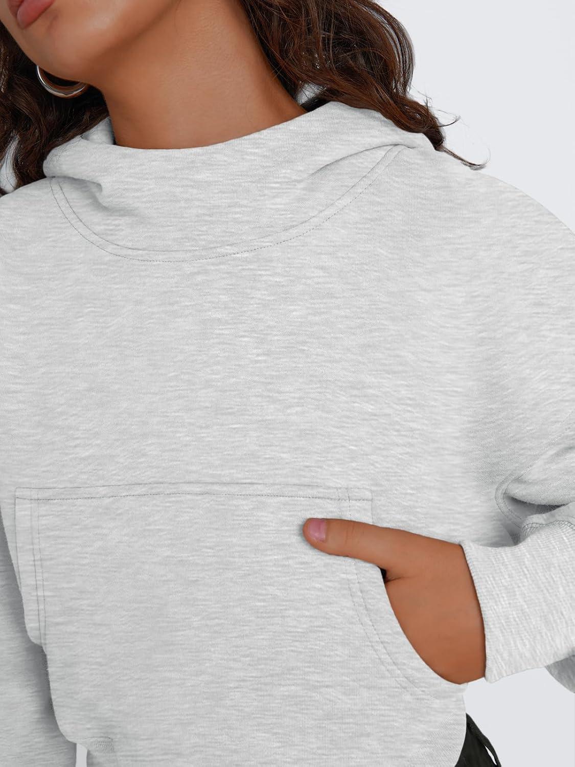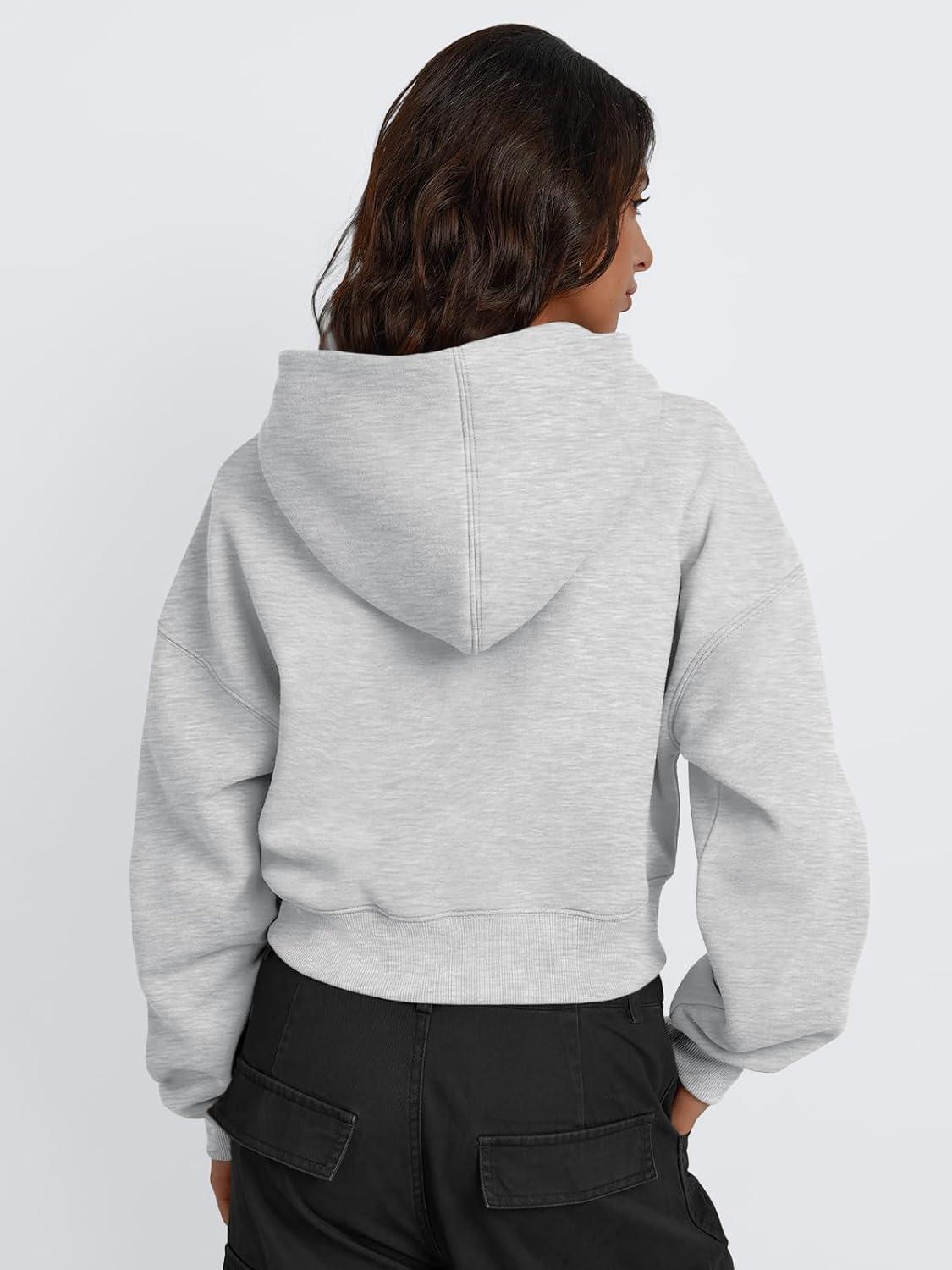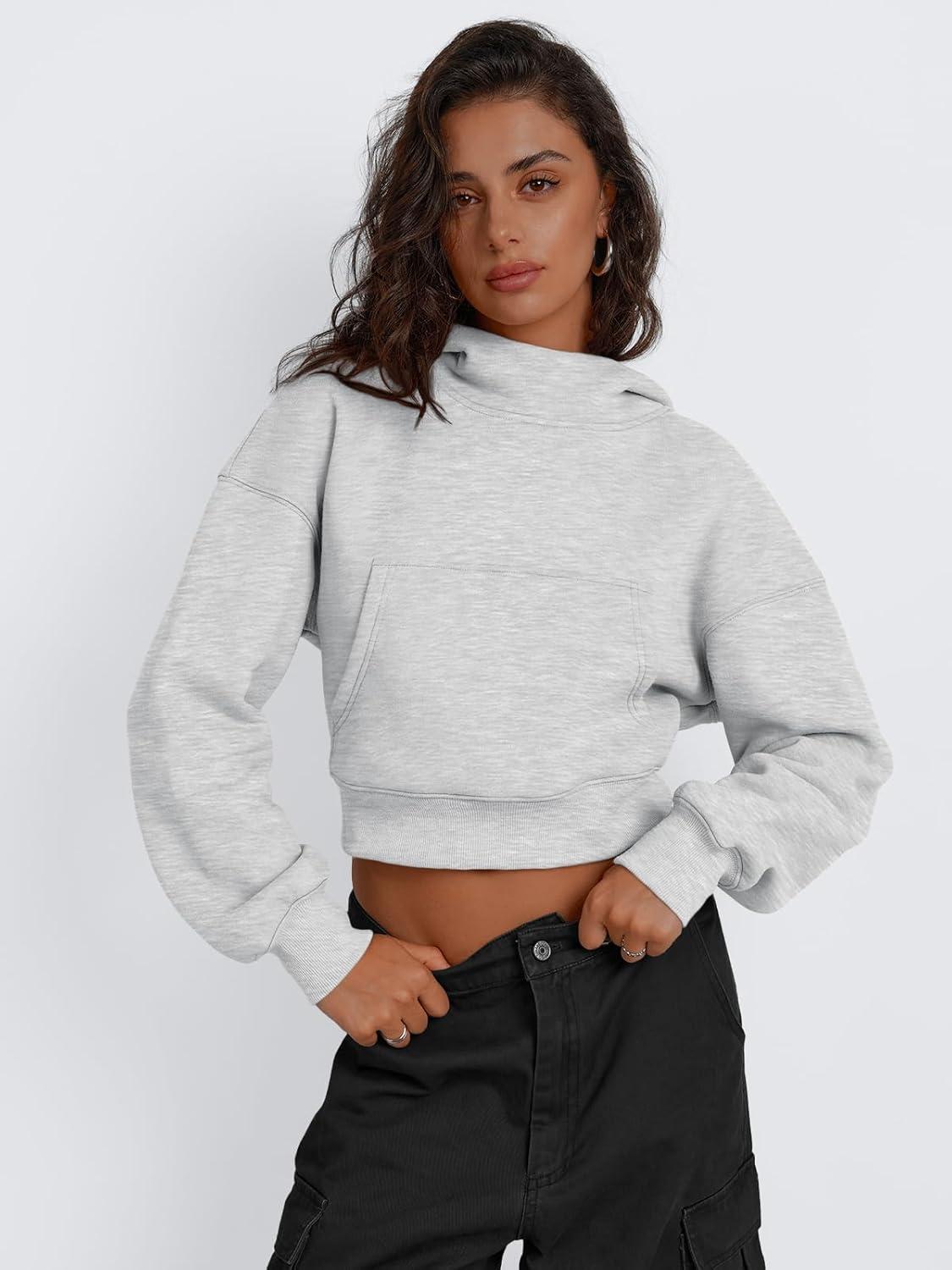 Trendy Queen Womens Cropped Hoodie Long Sleeve Sweatshirts Fall Fashion 2024 Casual Y2k Outfits Winter Clothes(Grey)
