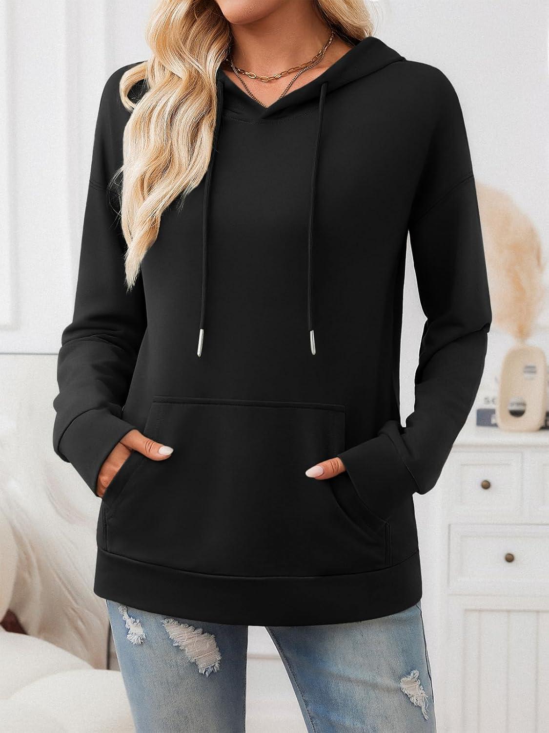 Trendy Queen Womens Fall Fashion T Shirts Basic Drawstring Pullover Loose Fit Hoodies Winter Clothes with Pocket(Black)