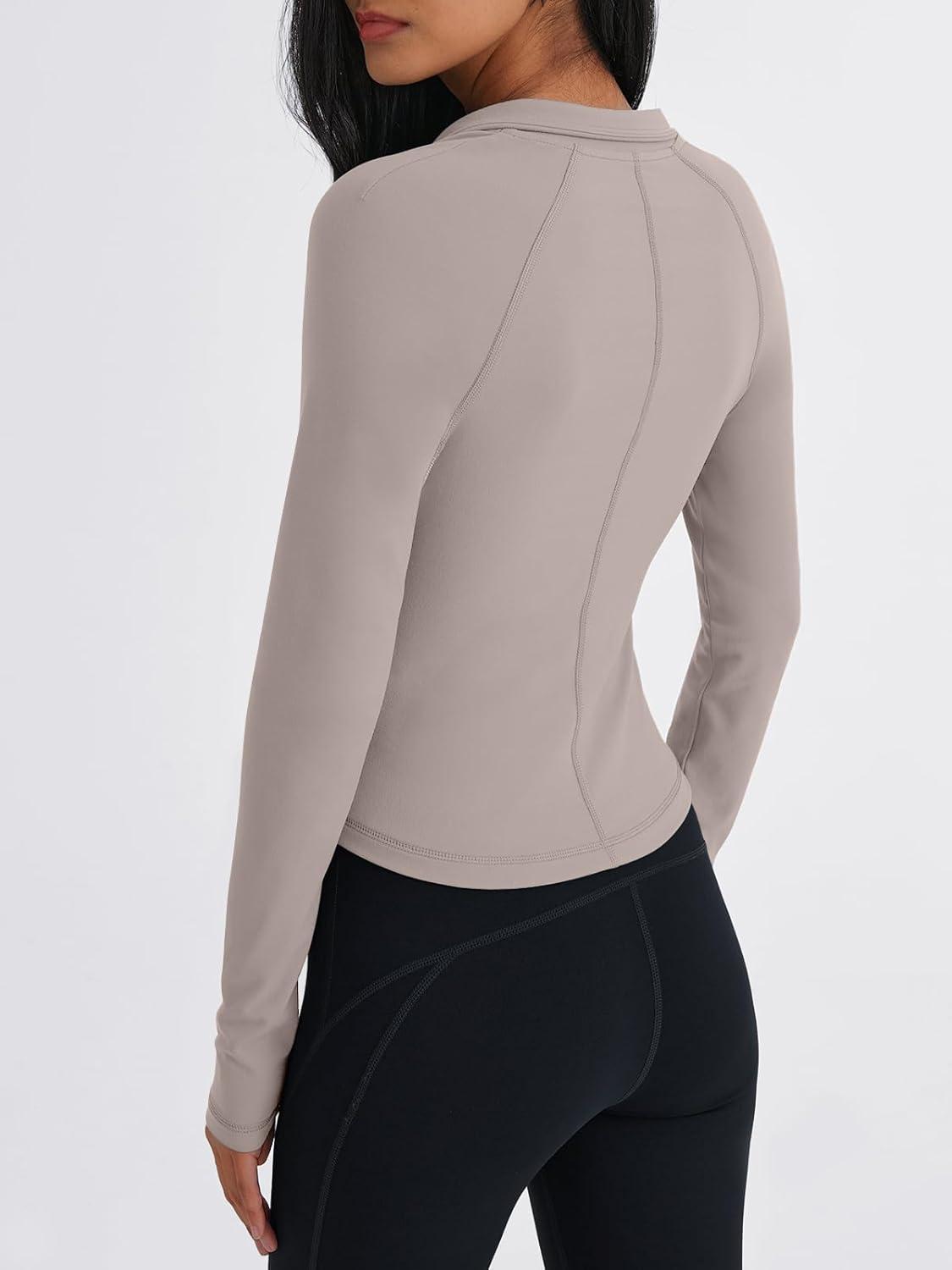 Trendy Queen Women’s Full Zip Up Scrubs Lightweight Jacket Cropped Long Sleeve Workout Sweatshirts Slim Fit Running Hoodies(Coffee Grey)