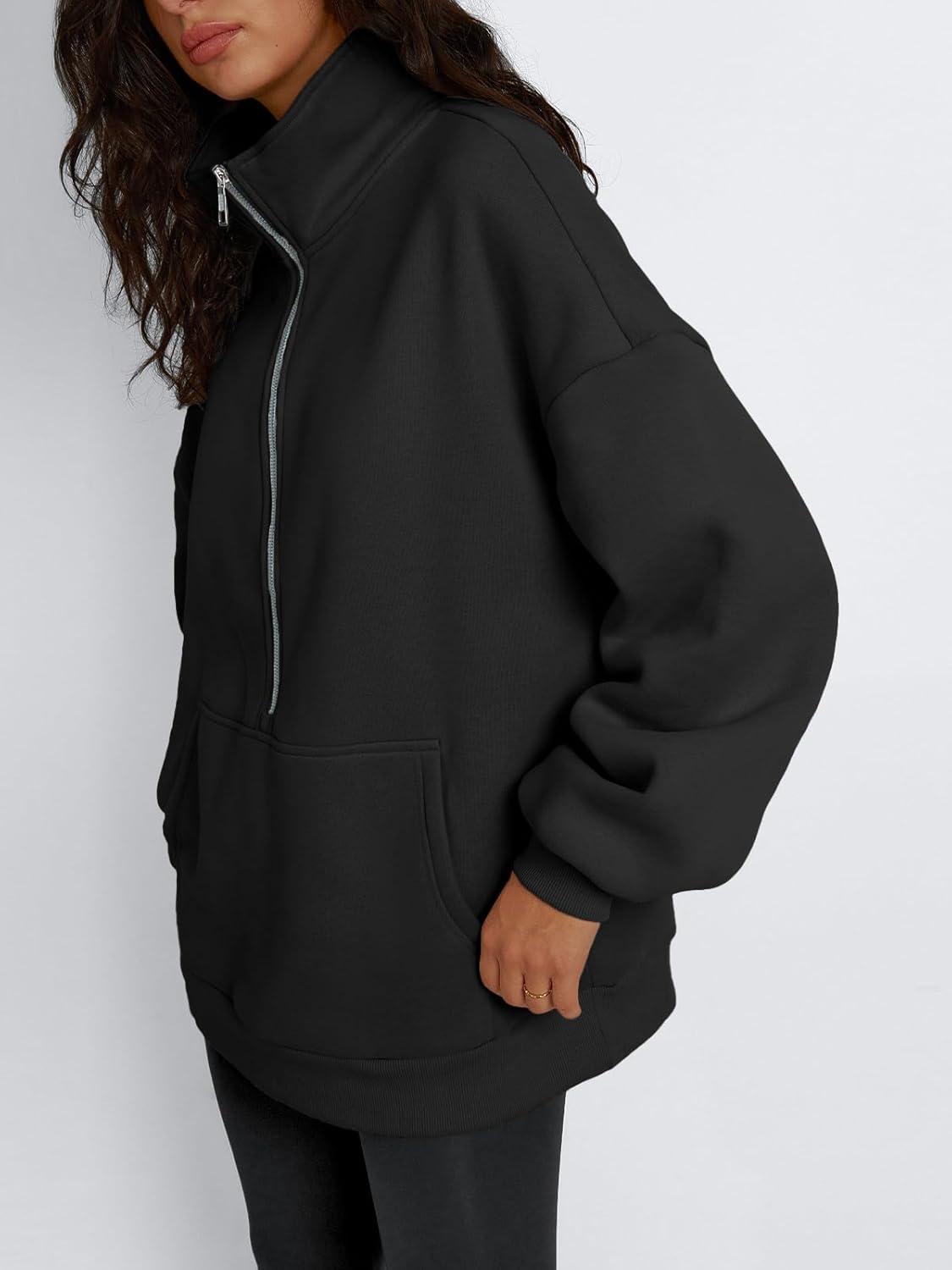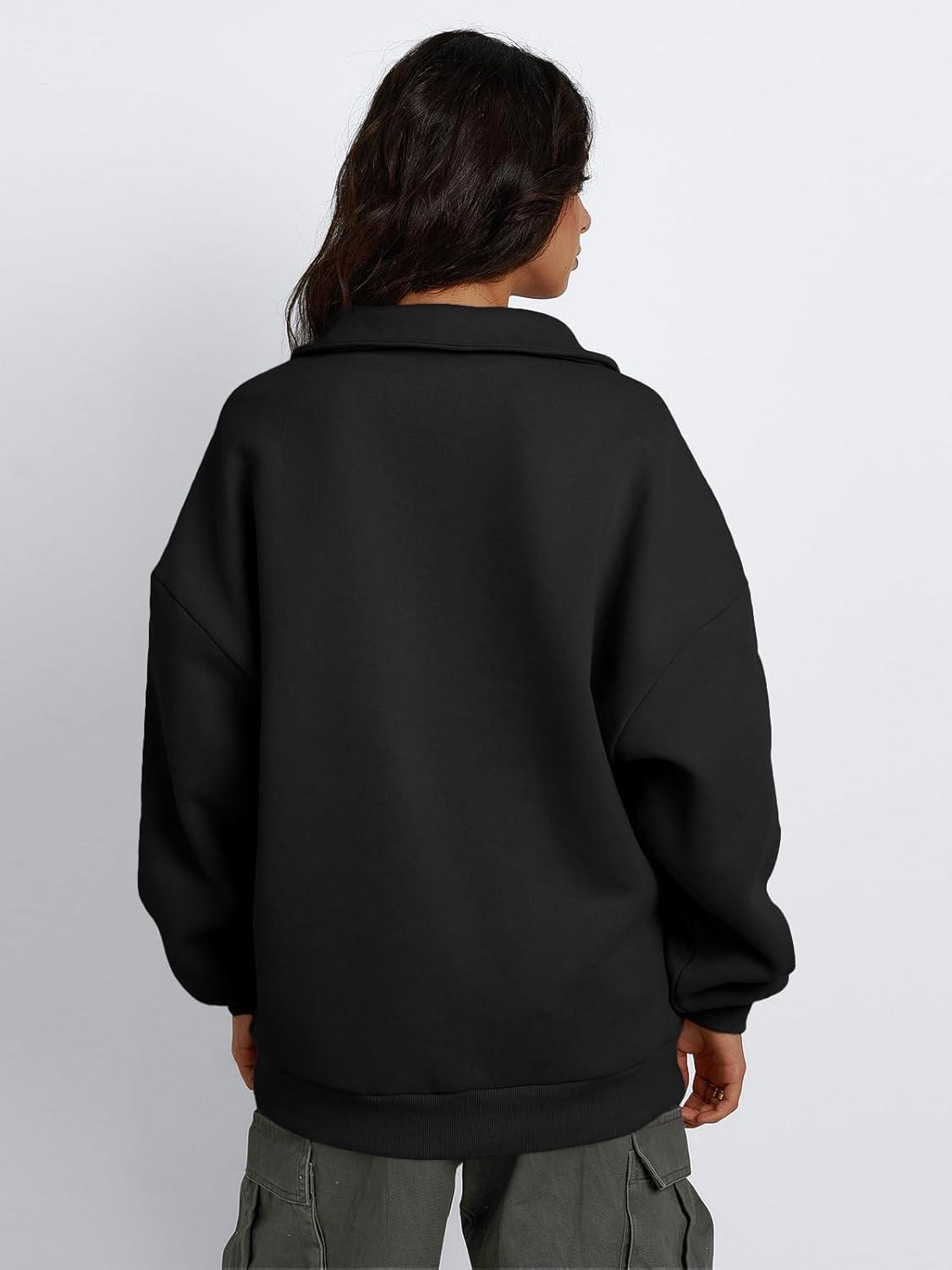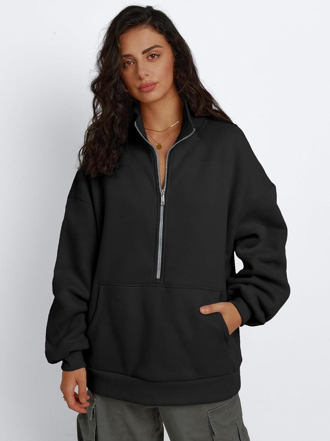 Trendy Queen Womens Half Zip Oversized Sweatshirts Casual Pullover Long Sleeve Shirts Fall Fashion 2024 Winter Clothes(Black)
