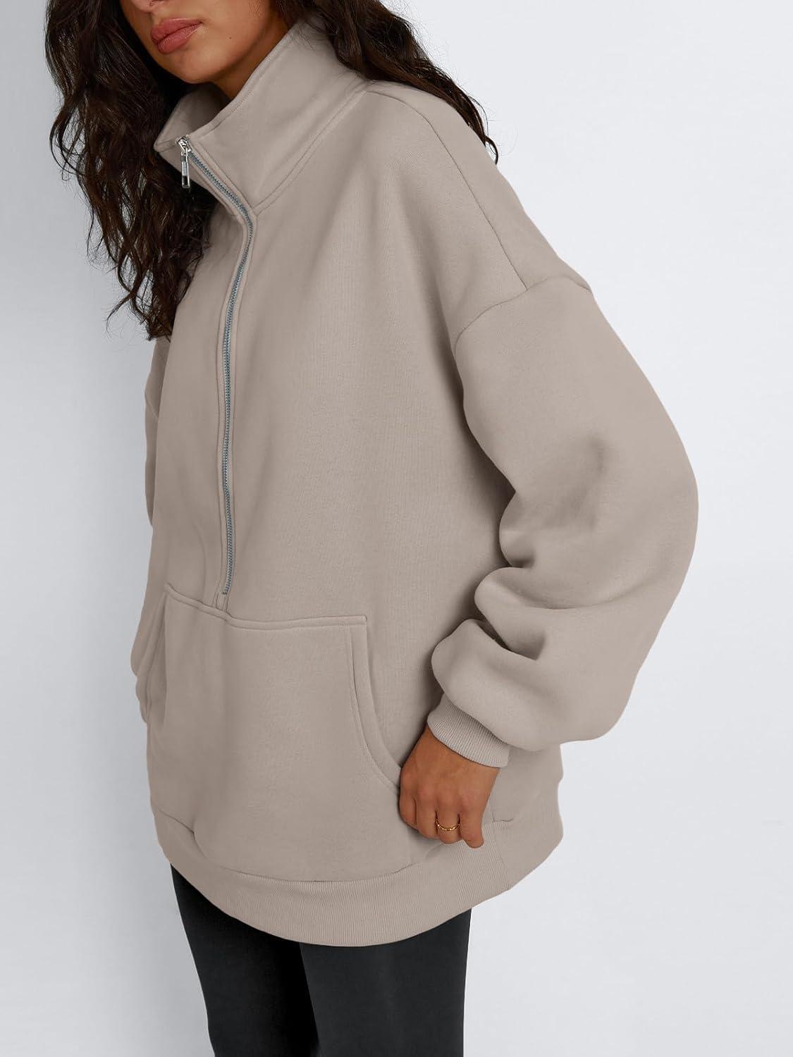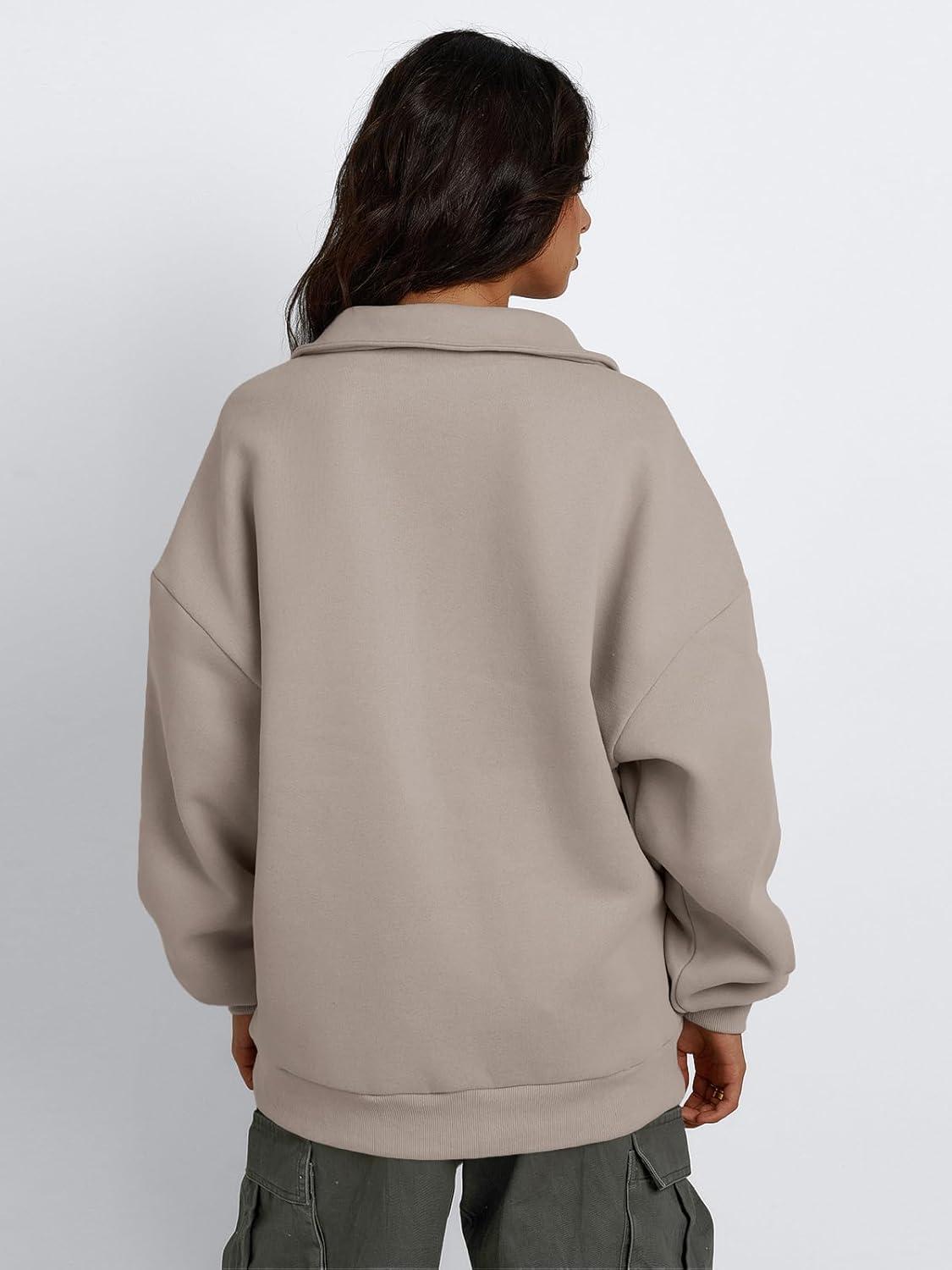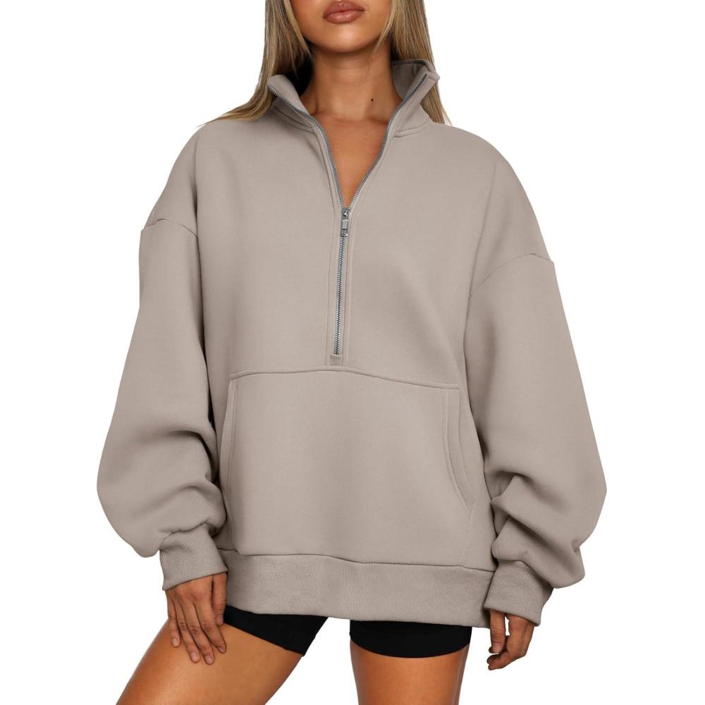 Trendy Queen Womens Half Zip Oversized Sweatshirts Casual Pullover Long Sleeve Shirts Fall Fashion 2024 Winter Clothes(Coffee Grey)