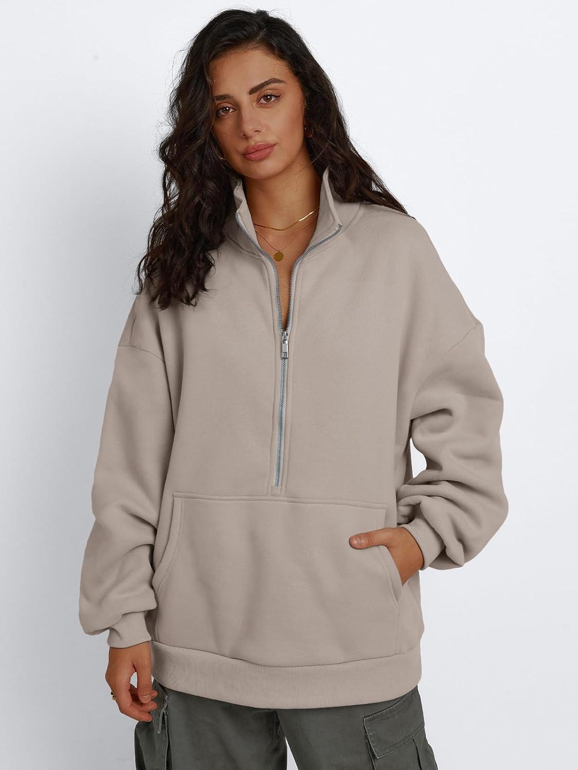 Trendy Queen Womens Half Zip Oversized Sweatshirts Casual Pullover Long Sleeve Shirts Fall Fashion 2024 Winter Clothes(Grey)