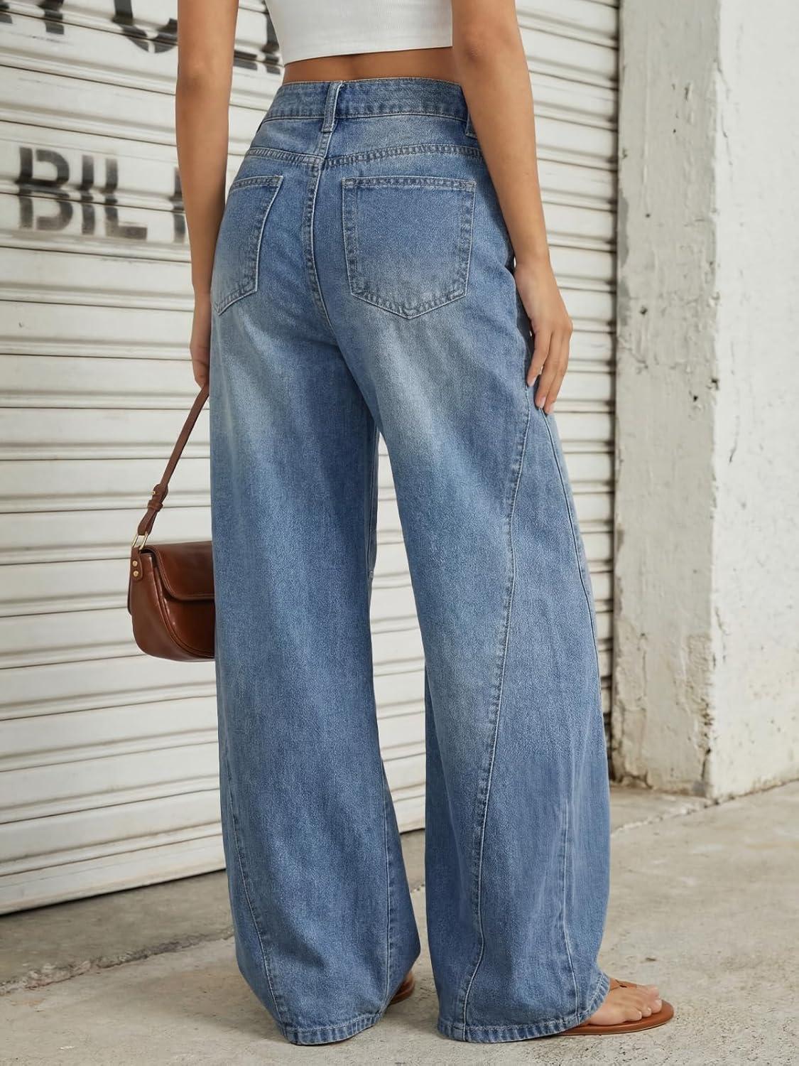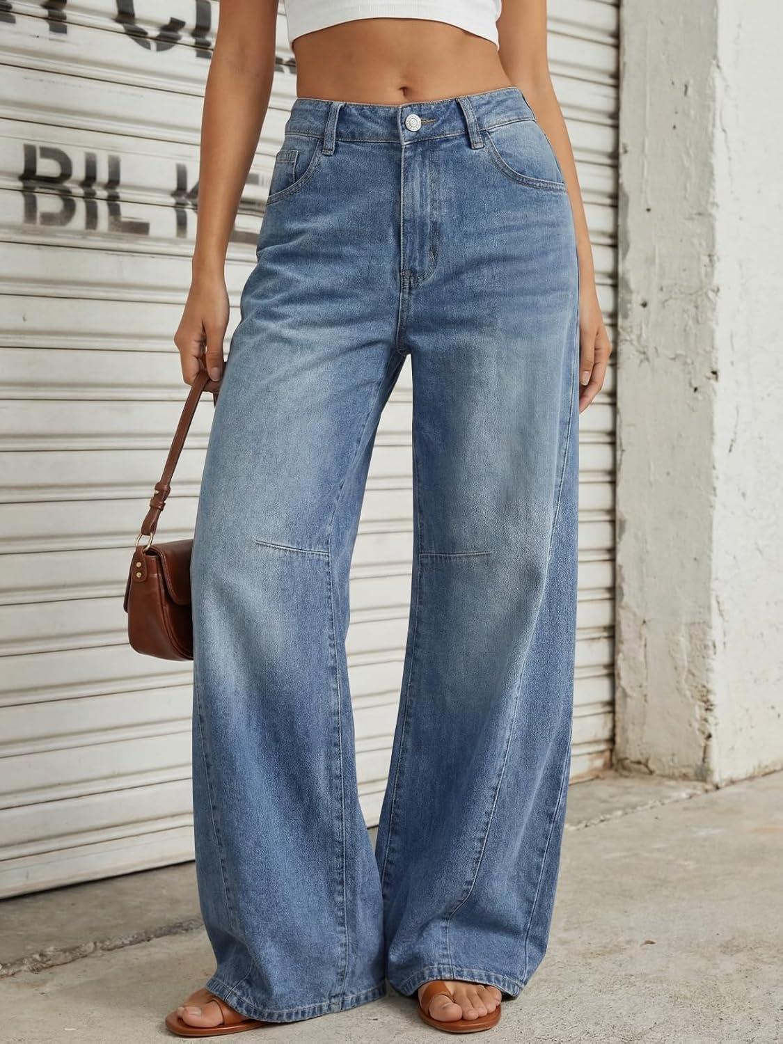 Trendy Queen Women’s High Waisted Wide Leg Flare Jeans Stretch Comfort Baggy Denim Pants(Blue)