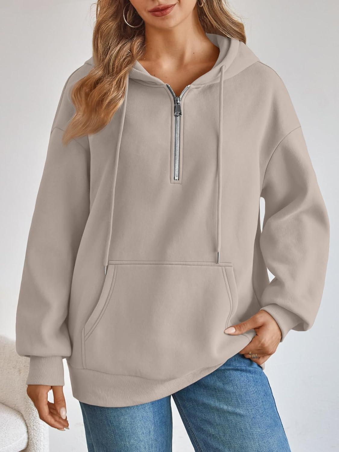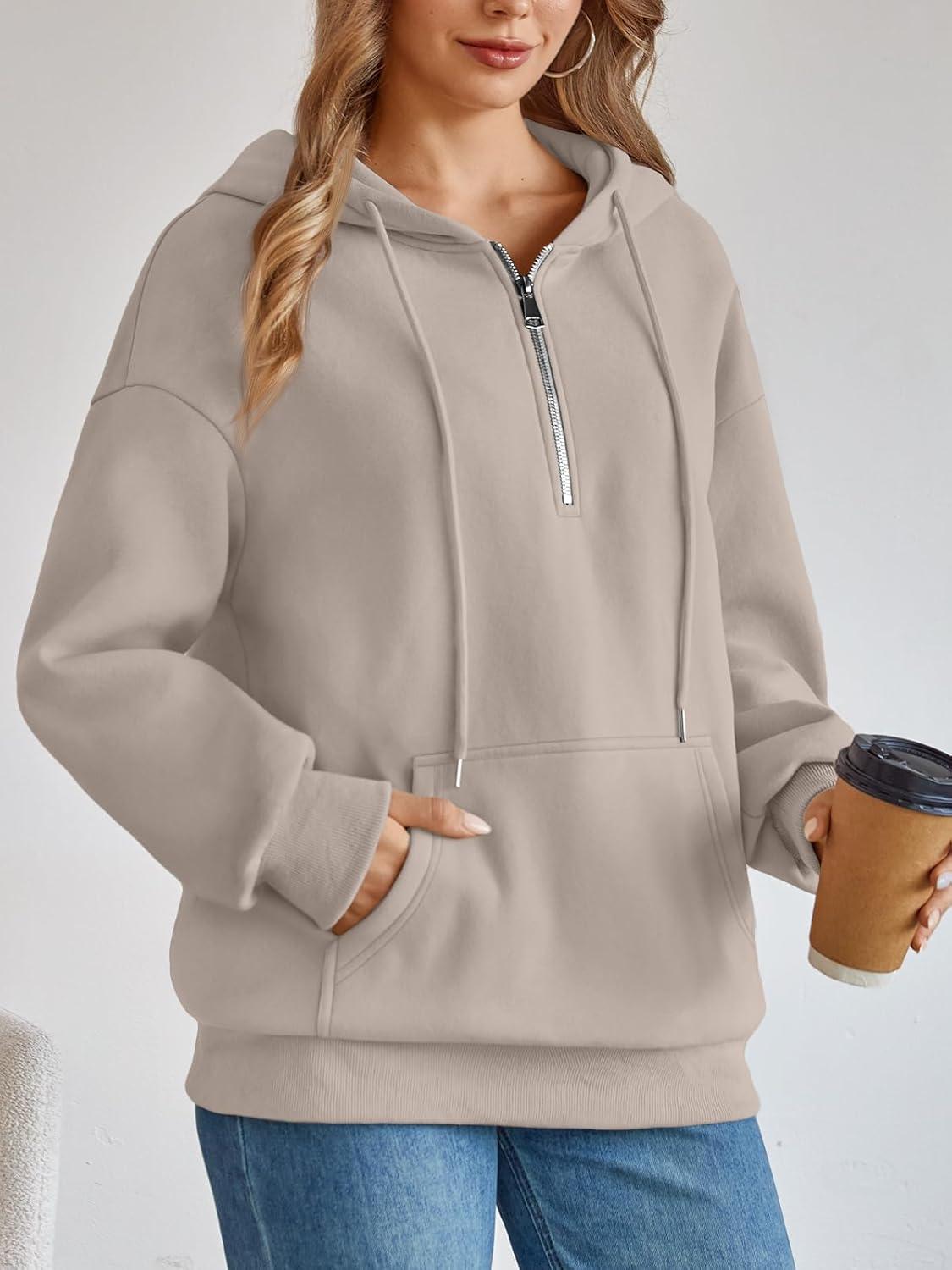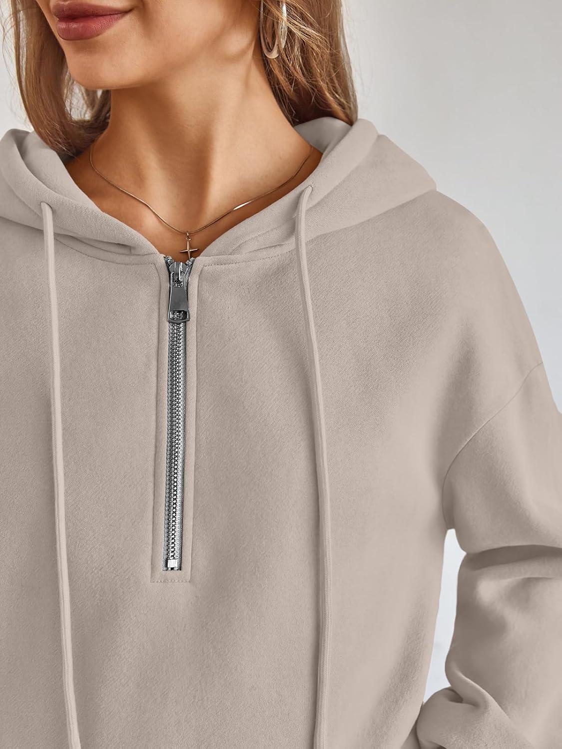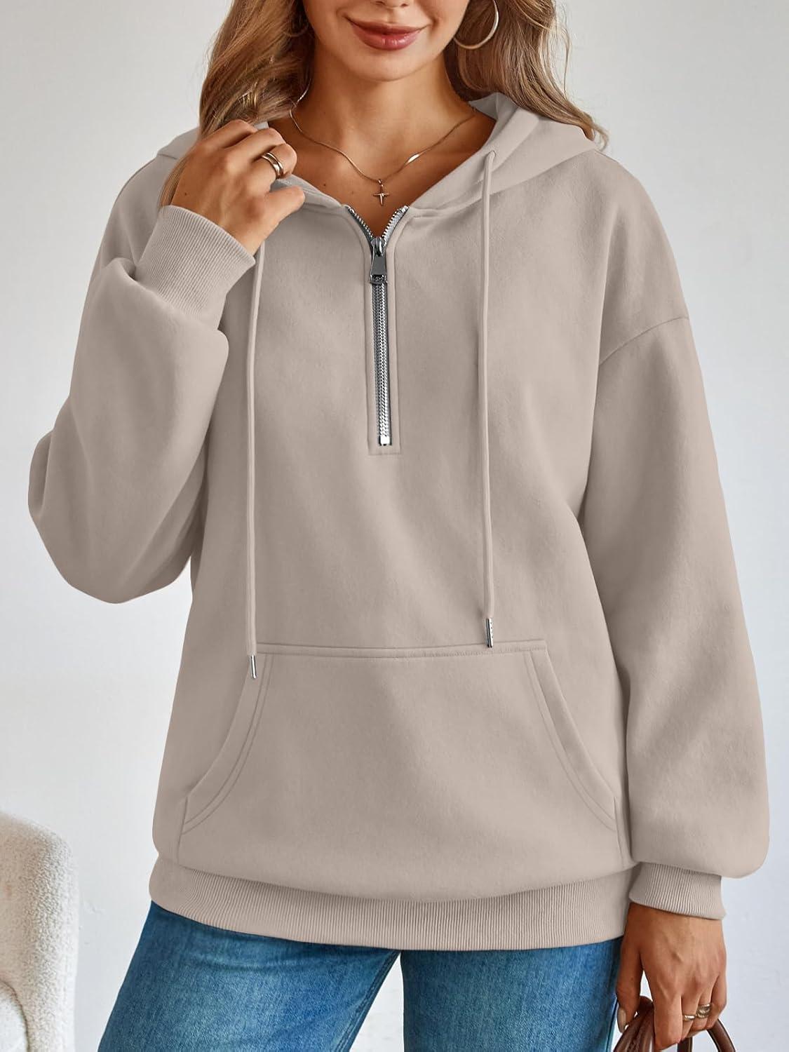 Trendy Queen Womens Hoodies Fleece Fashion Half Zip Sweatshirts Cute Y2k Fall Clothes 2025(Coffeegrey)