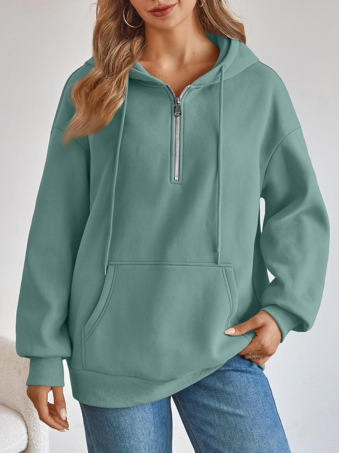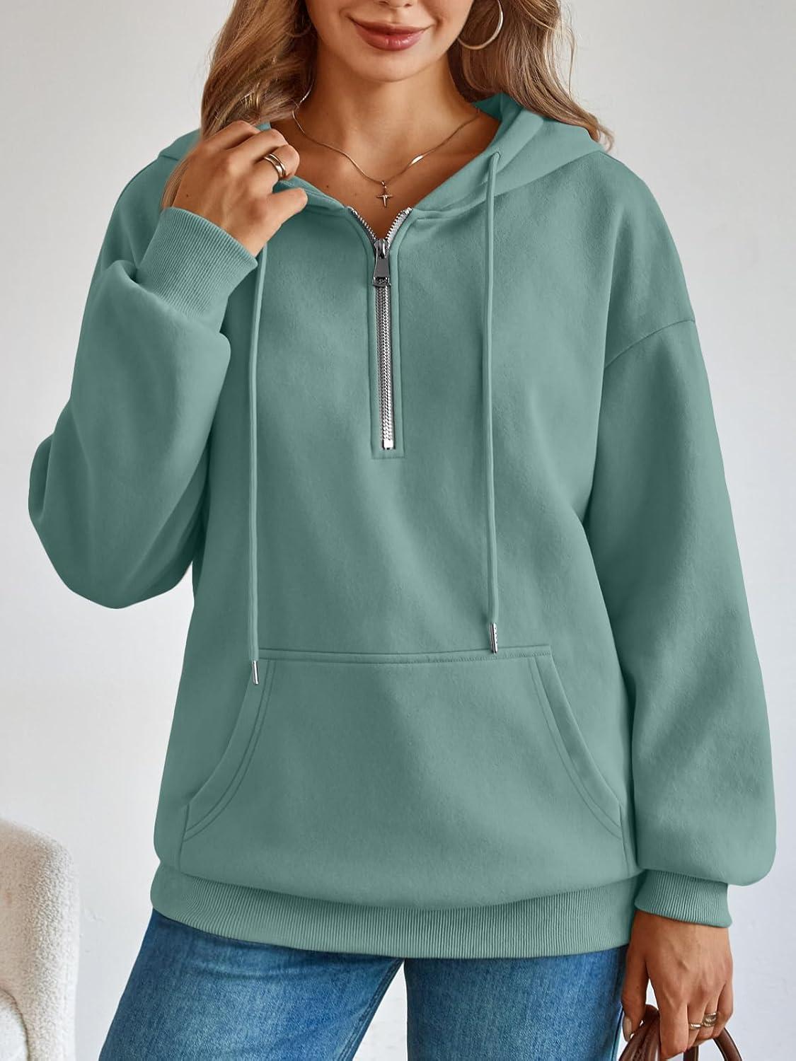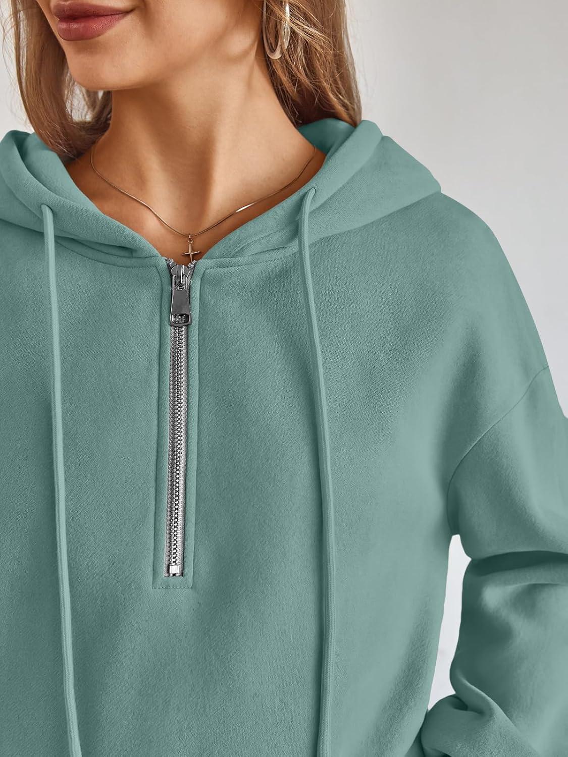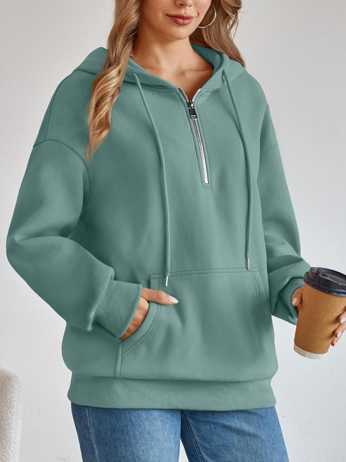 Trendy Queen Womens Hoodies Fleece Fashion Half Zip Sweatshirts Cute Y2k Fall Clothes 2025(Green)