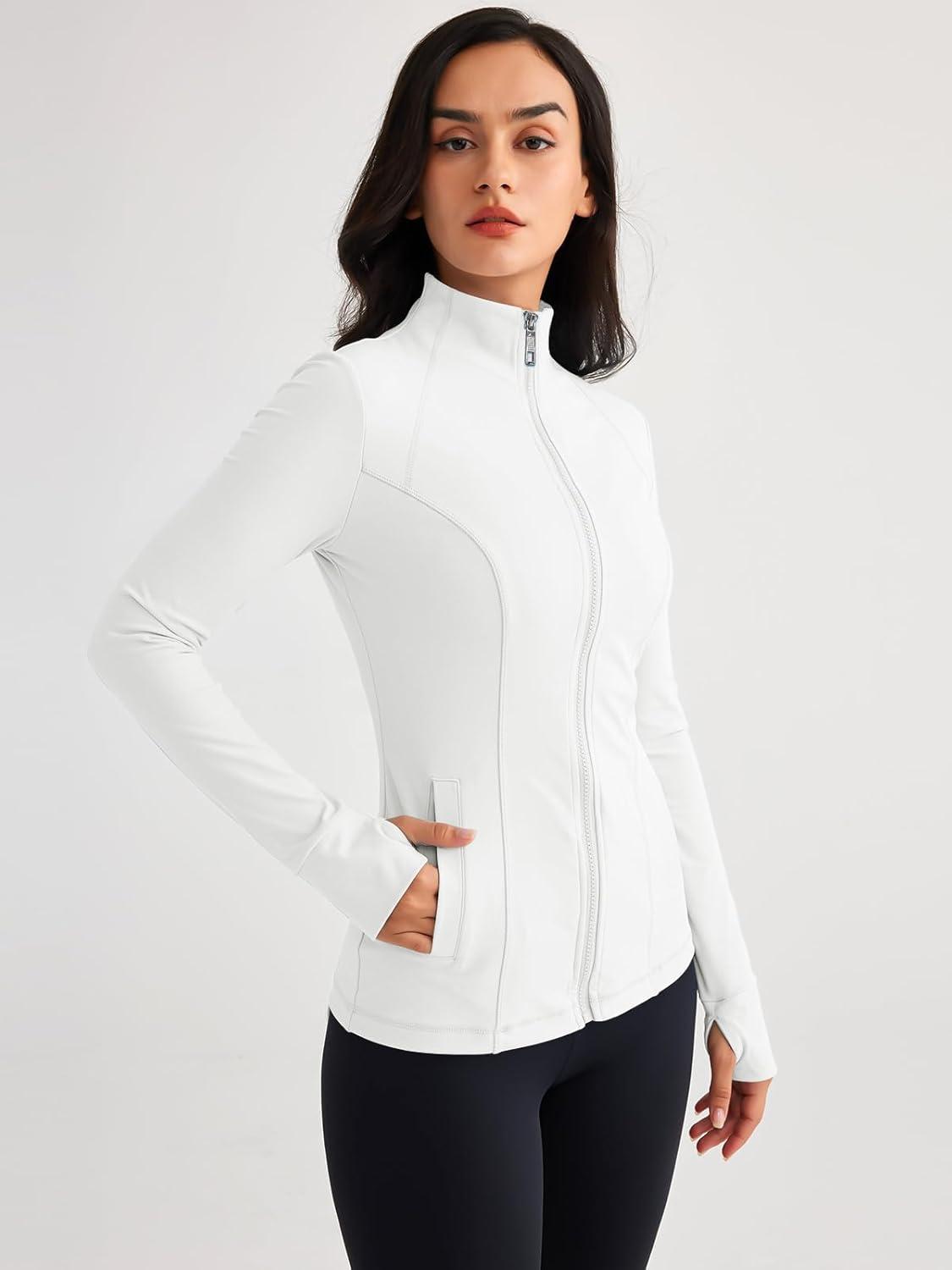 Trendy Queen Womens Lightweight Zip Up Jackets 2025 Athletic Hoodies Fall Gym Shirts Running Workout Clothes with Pocket(White)