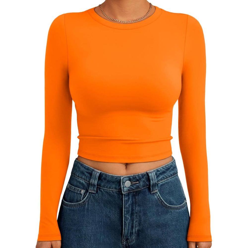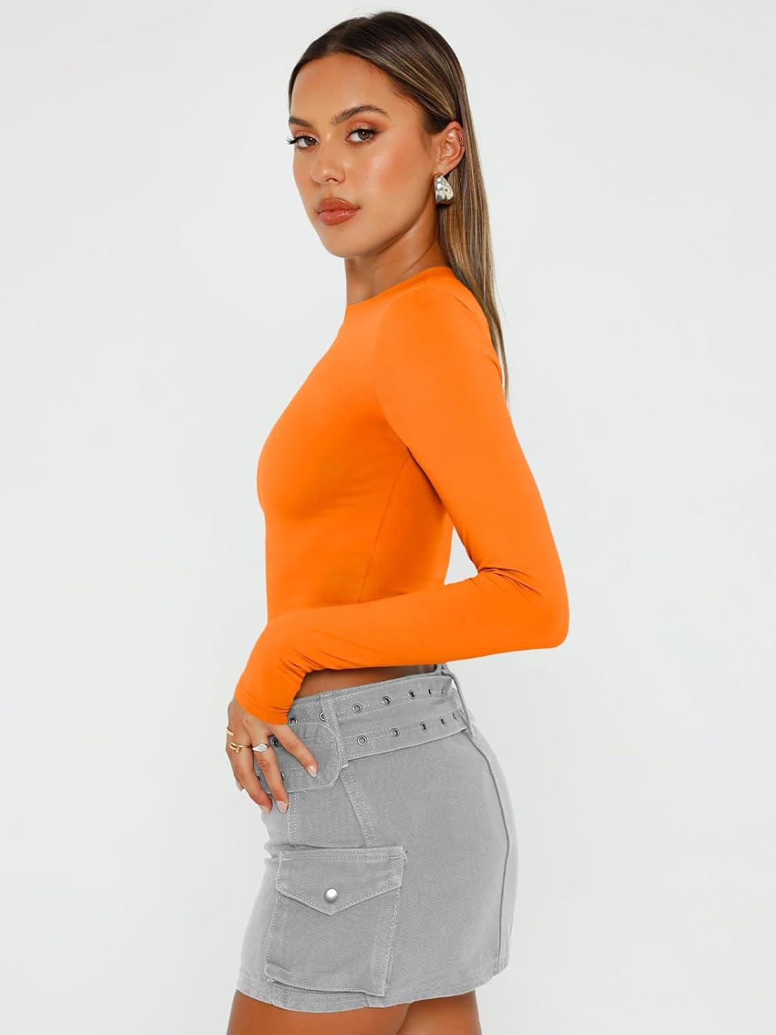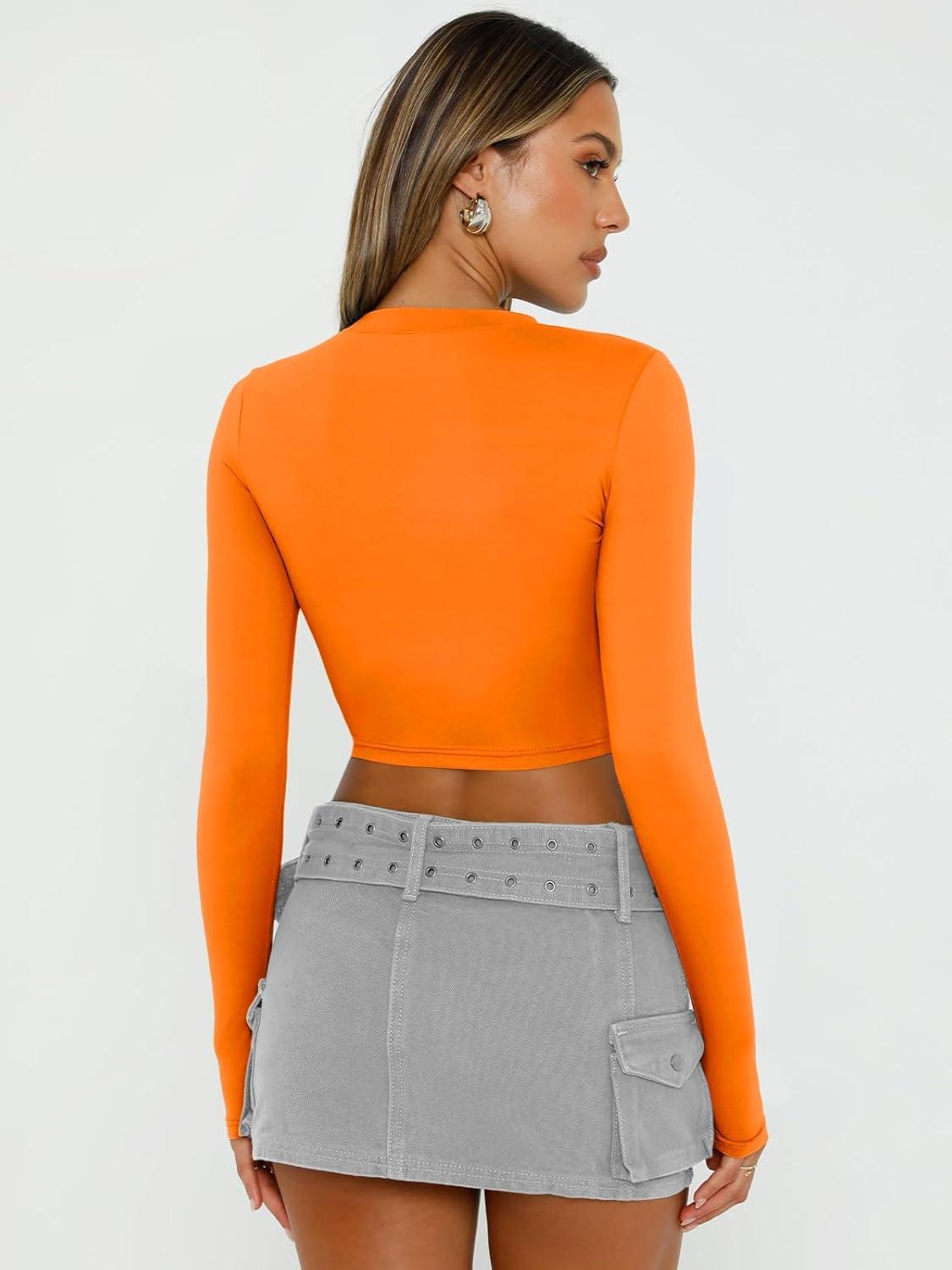 Don’t miss out on our limited-time offer: buy Trendy Queen Womens Long Sleeve Crop Tops Basic Slim Fitted Shirts Fashion 2025 Going Out Y2k Tops Teen Girl Clothes(Orange), get {accessory} free!