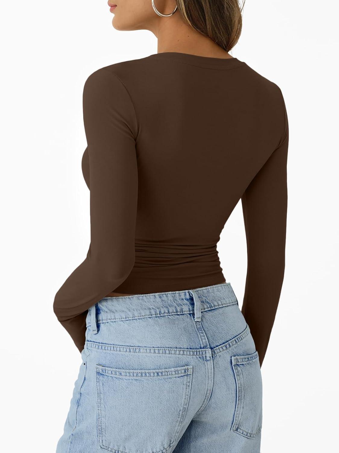 imageTrendy Queen Womens Long Sleeve Shirts Crop Tops Fall Fashion 2025 Going Out Basic Winter ClothesChocolate