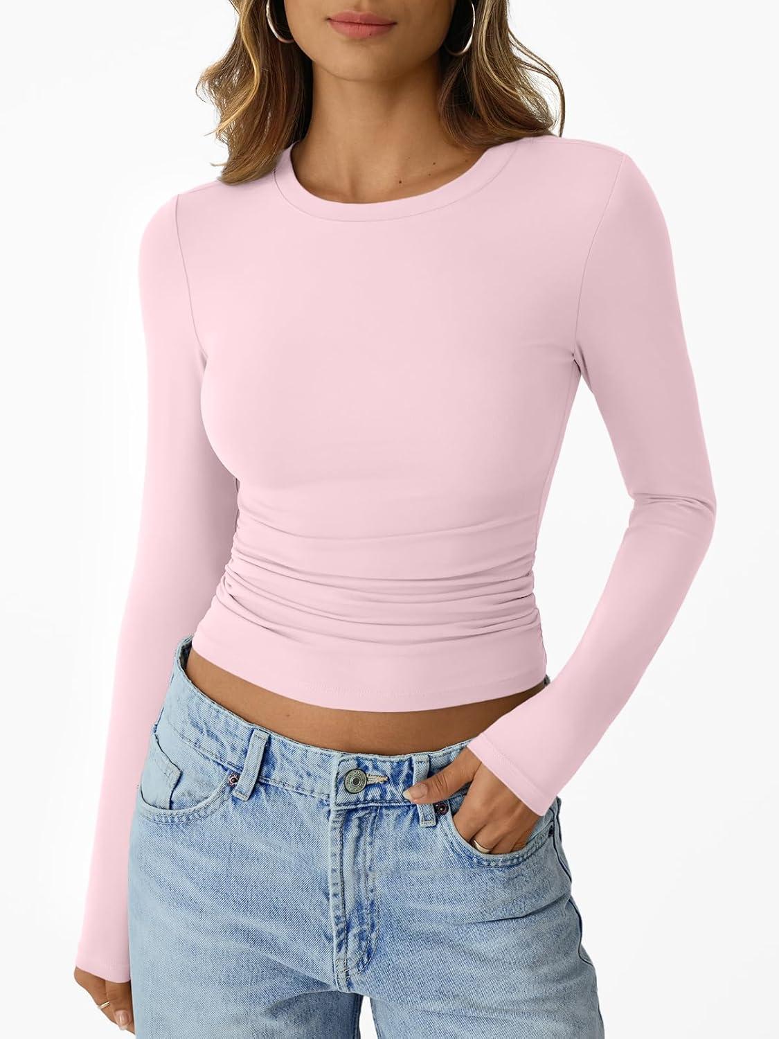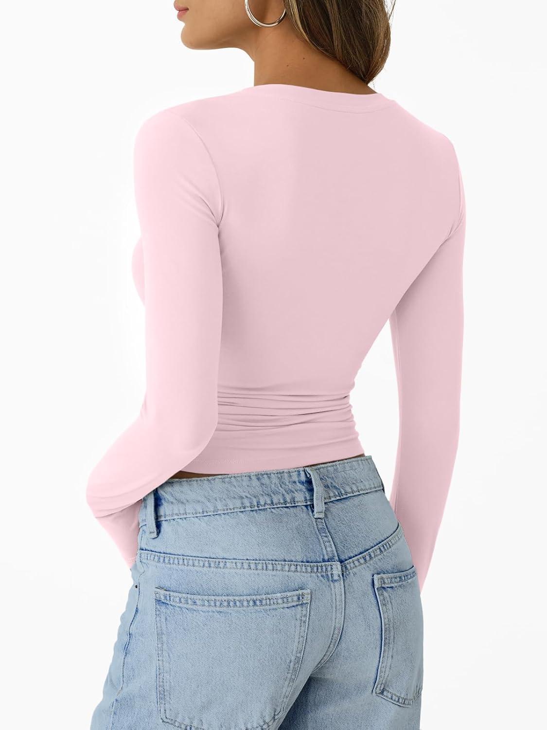 Get your hands on our newest Trendy Queen Womens Long Sleeve Shirts Crop Tops Fall Fashion 2025 Going Out Basic Winter Clothes(Pink) and enjoy a limited-time discount offer.