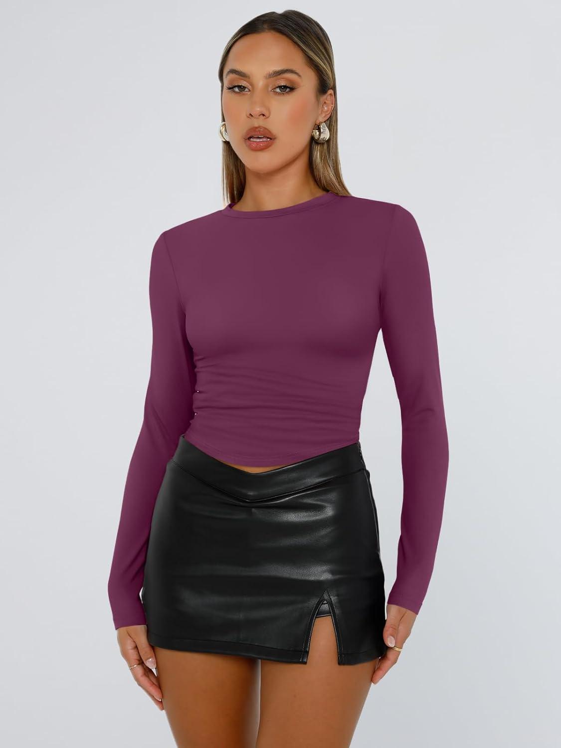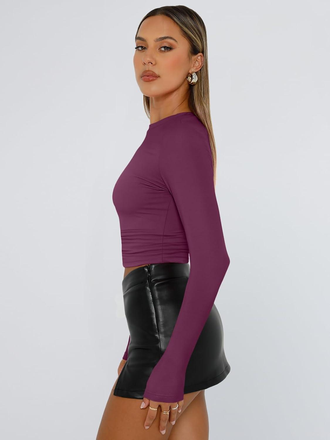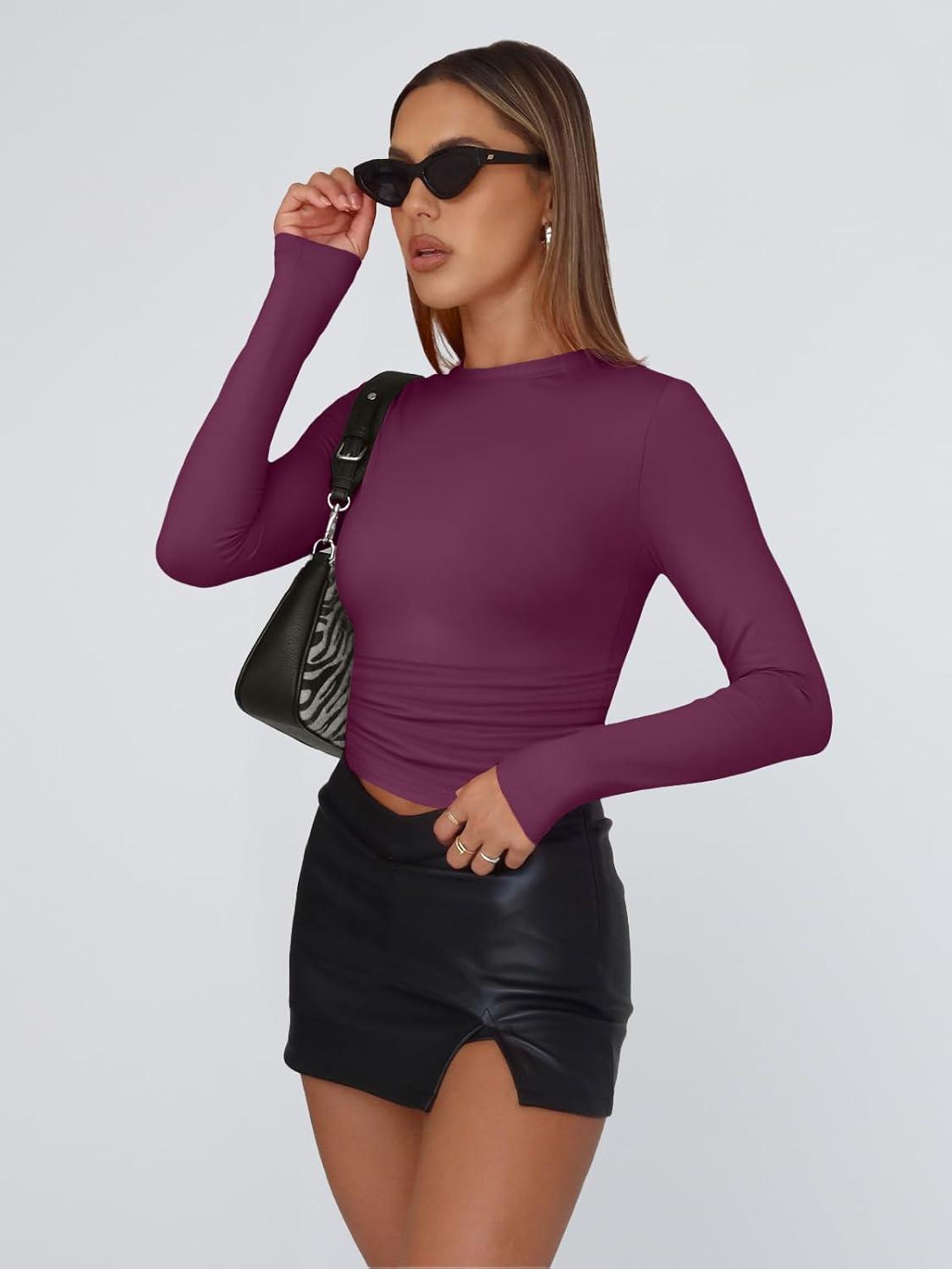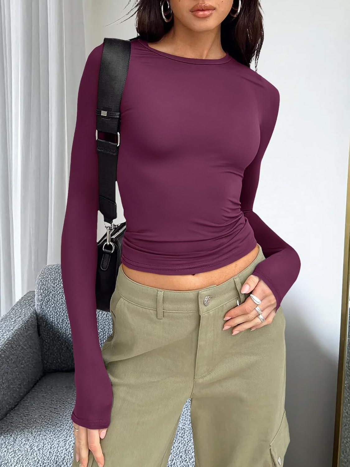 Trendy Queen Womens Long Sleeve T Shirts Fall Fashion 2026 Basic Crop Tops Going Out Outfits Y2k Clothes(Mulberry)